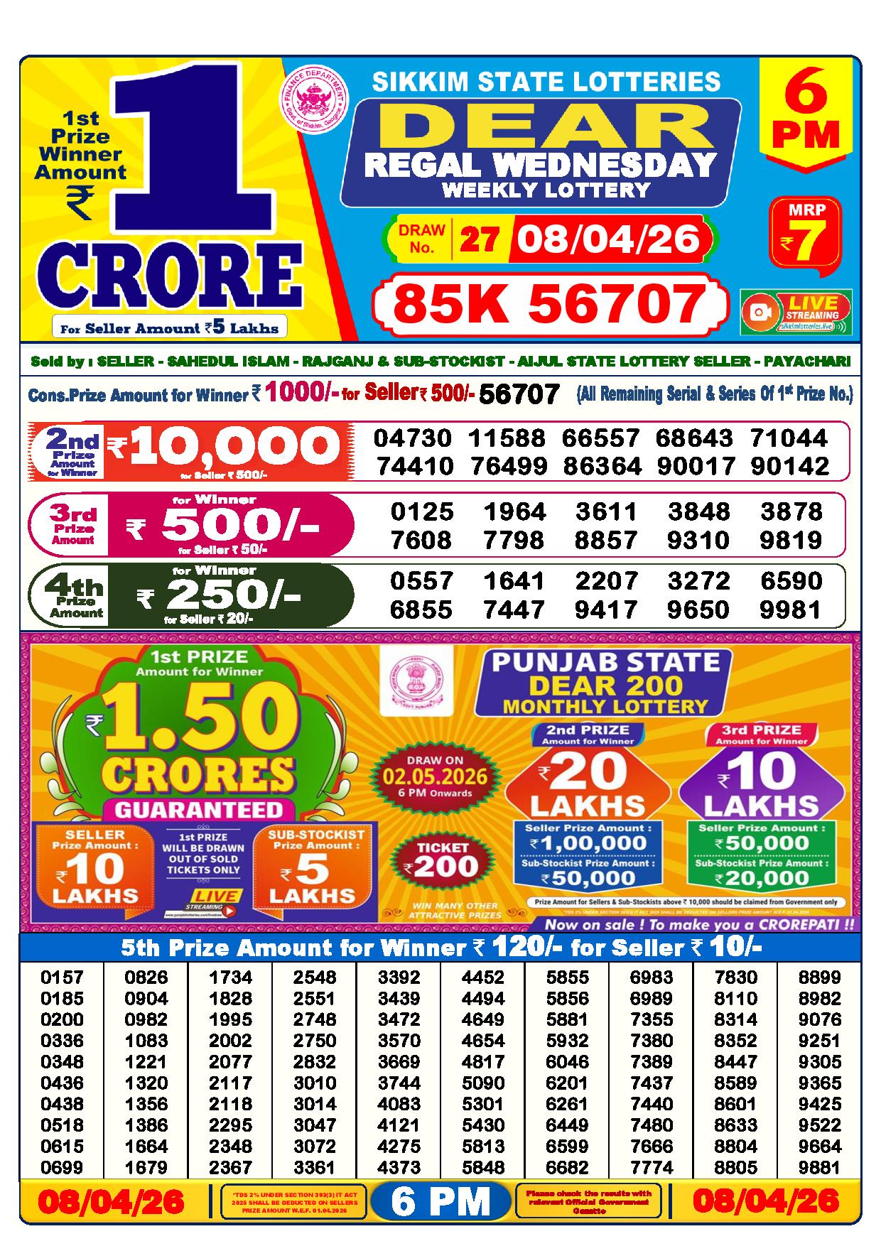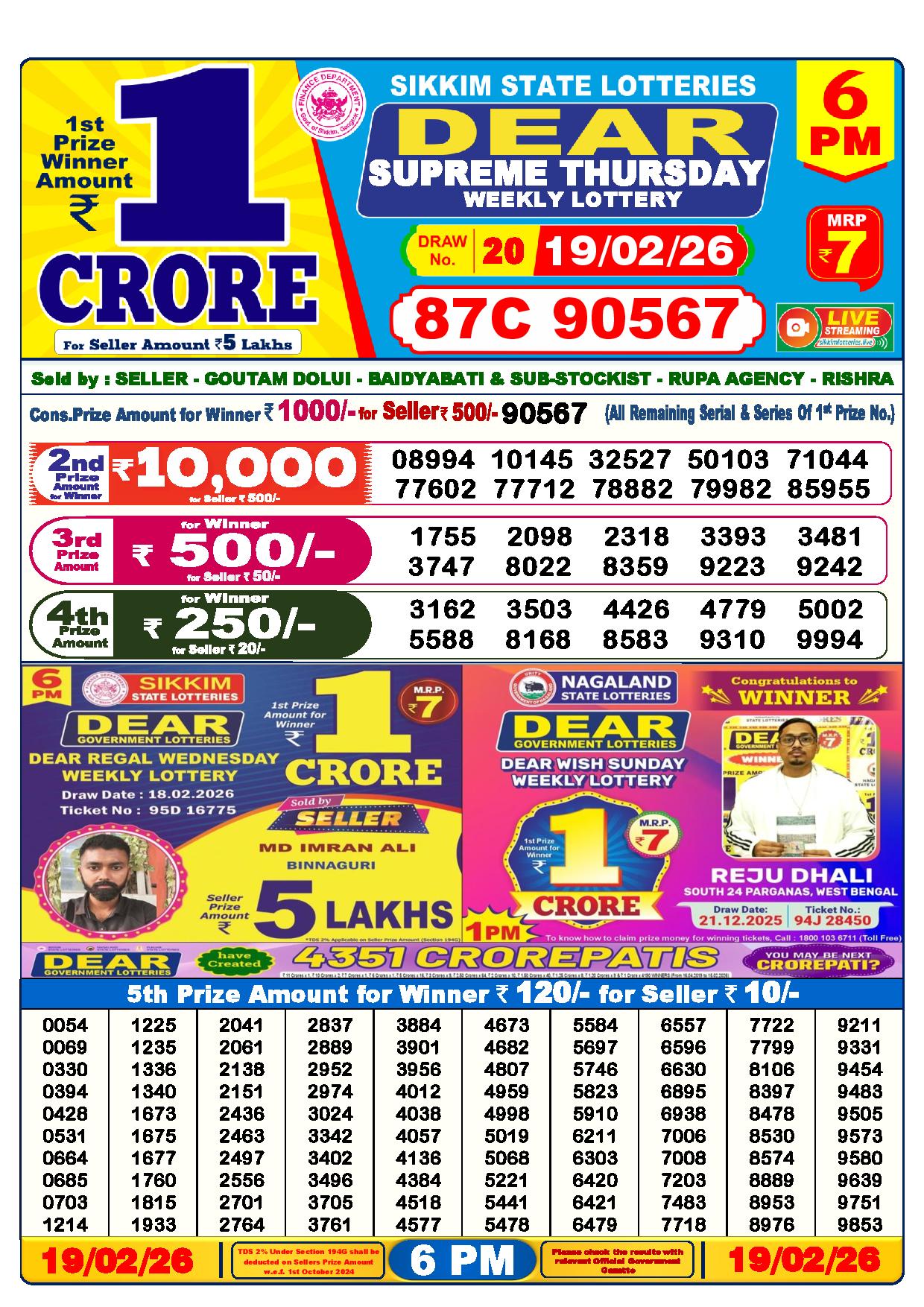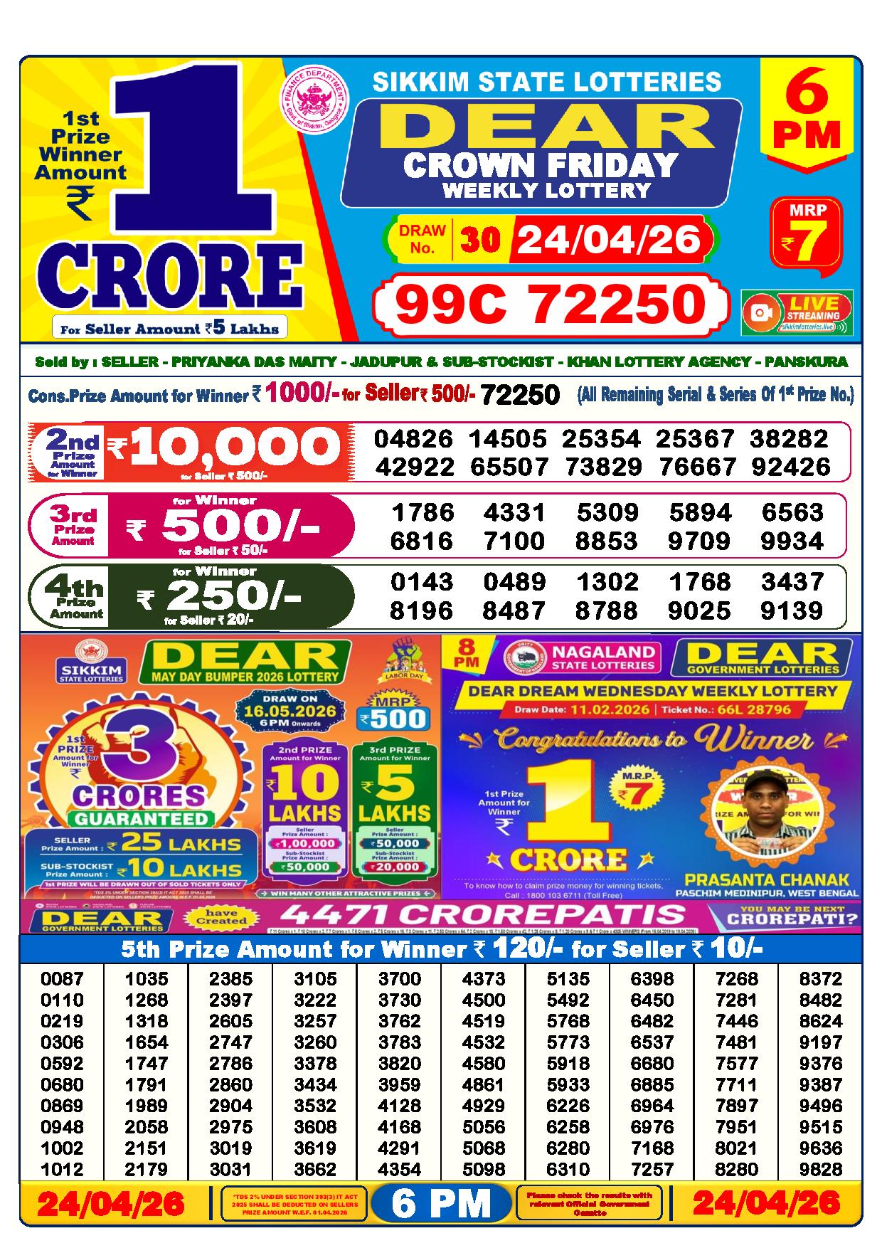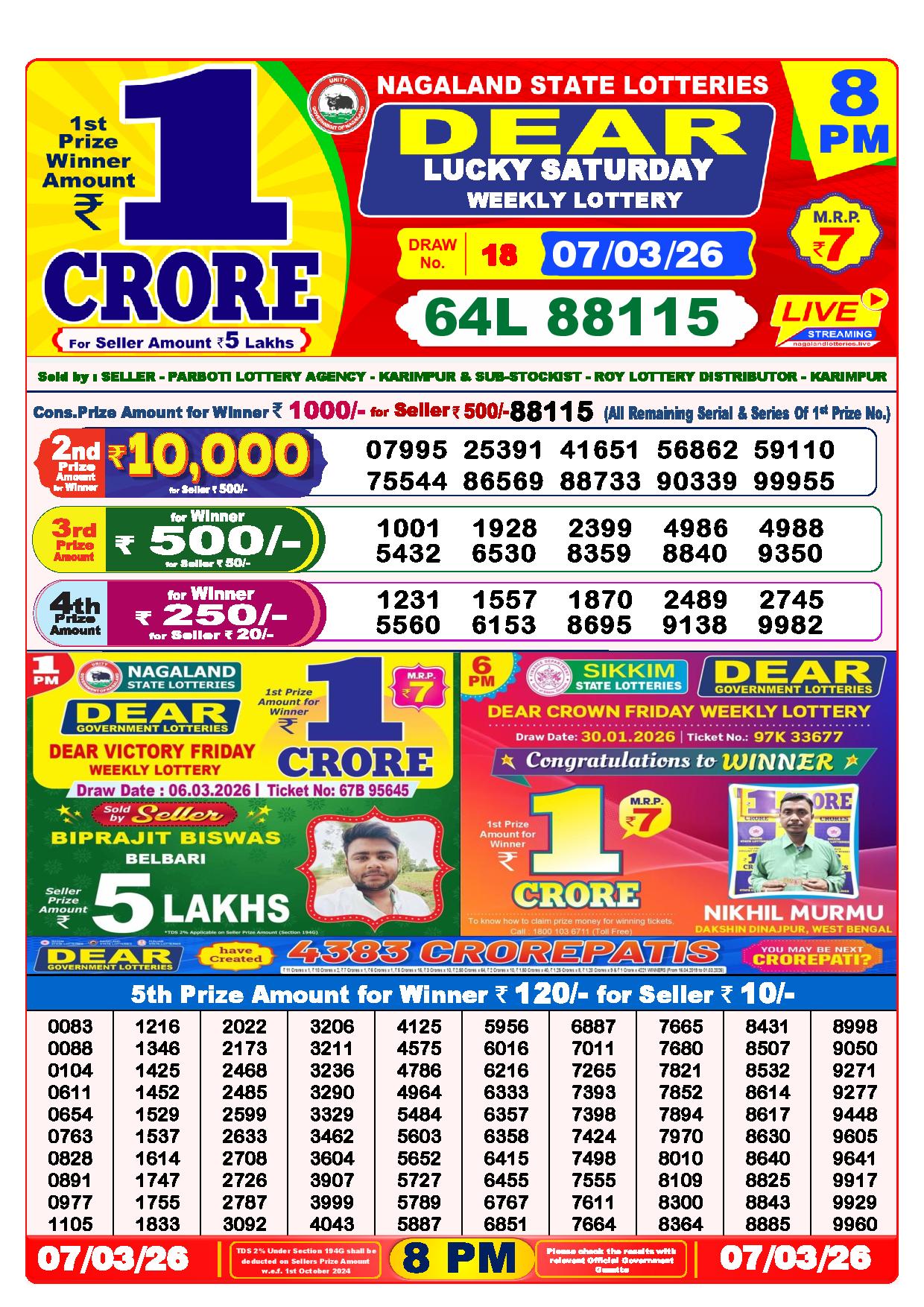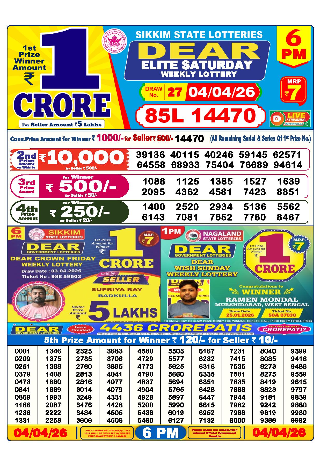 - The Official Government Gazette, Dhankesari, and Dhankesari lottery Sambad publish the lottery results.