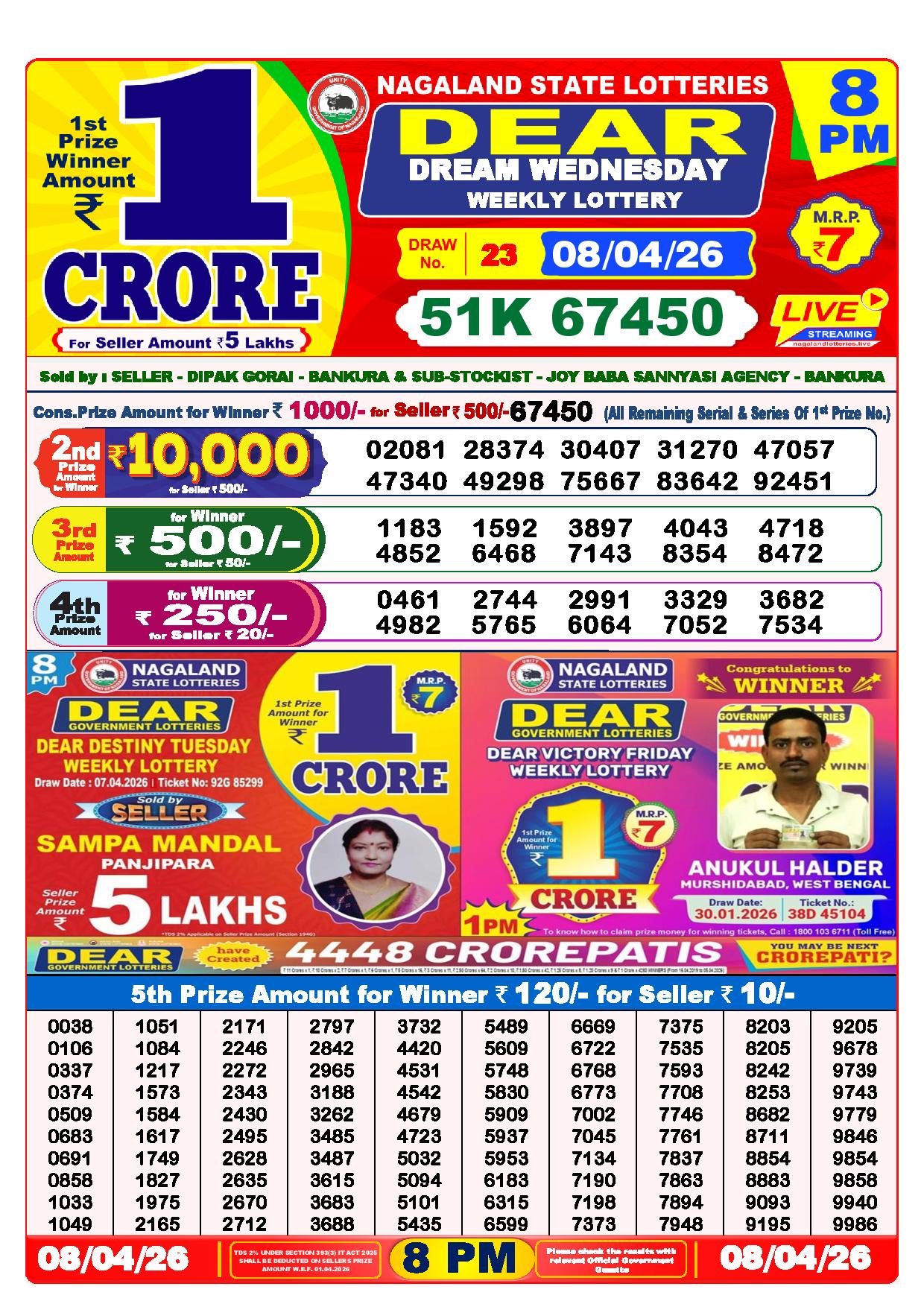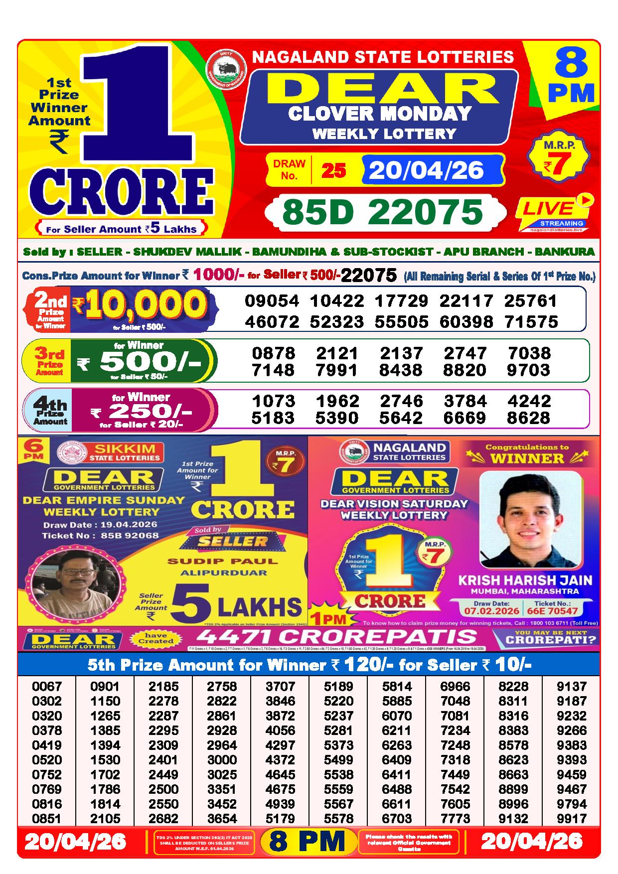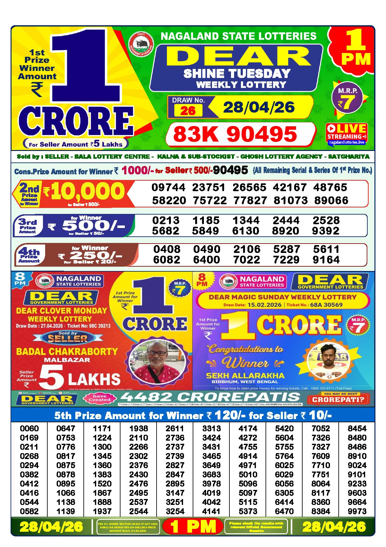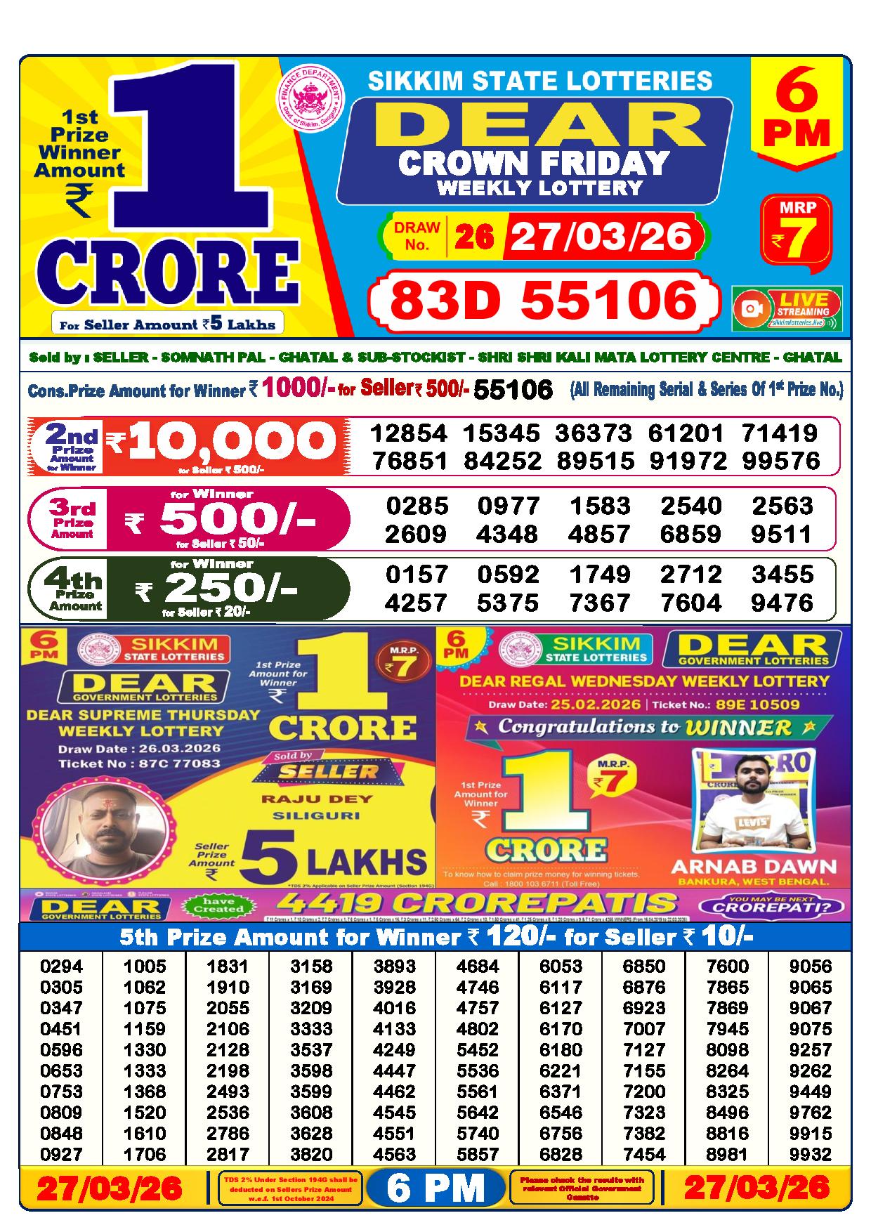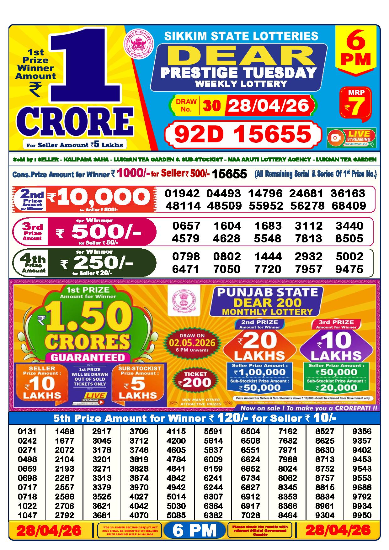 - The Official Government Gazette, Dhankesari, and Dhankesari lottery Sambad publish the lottery results.