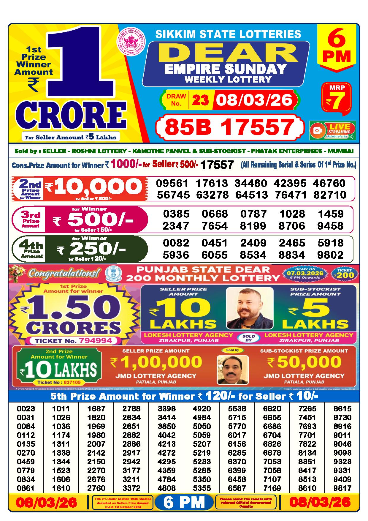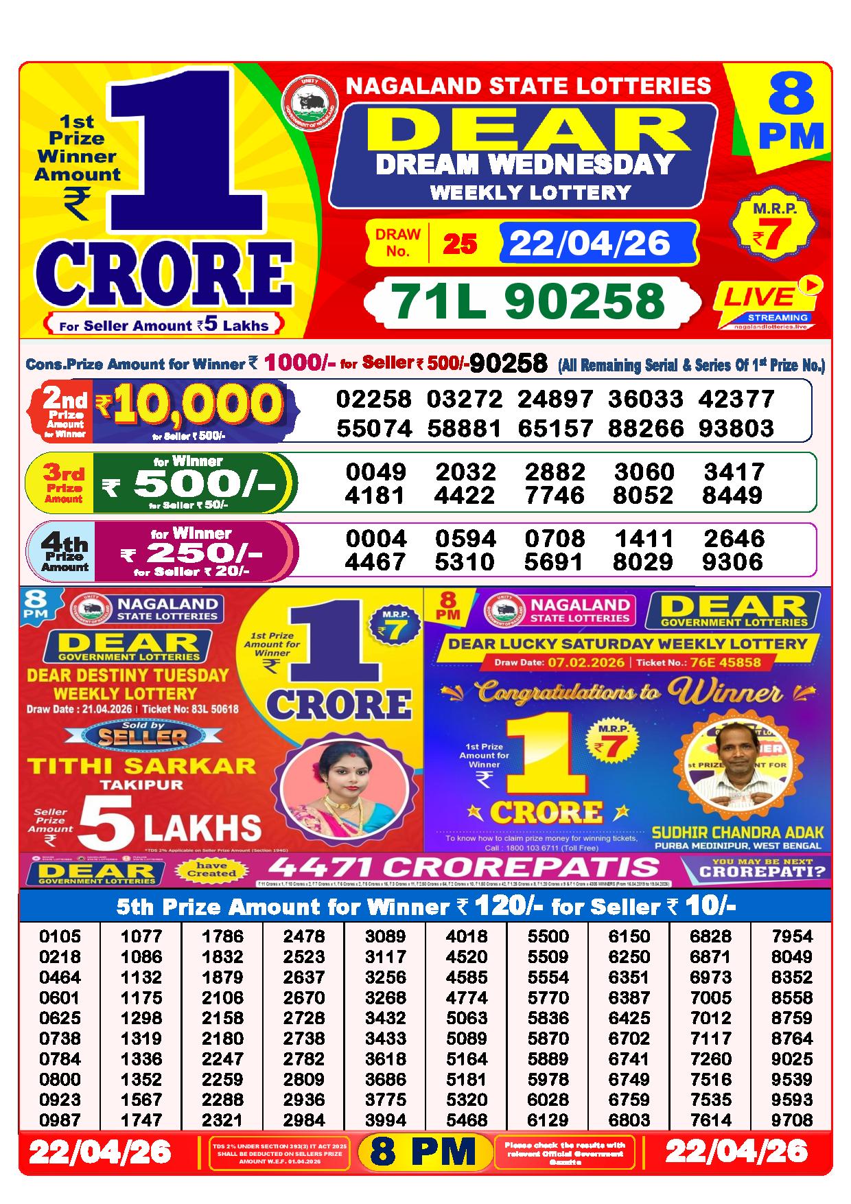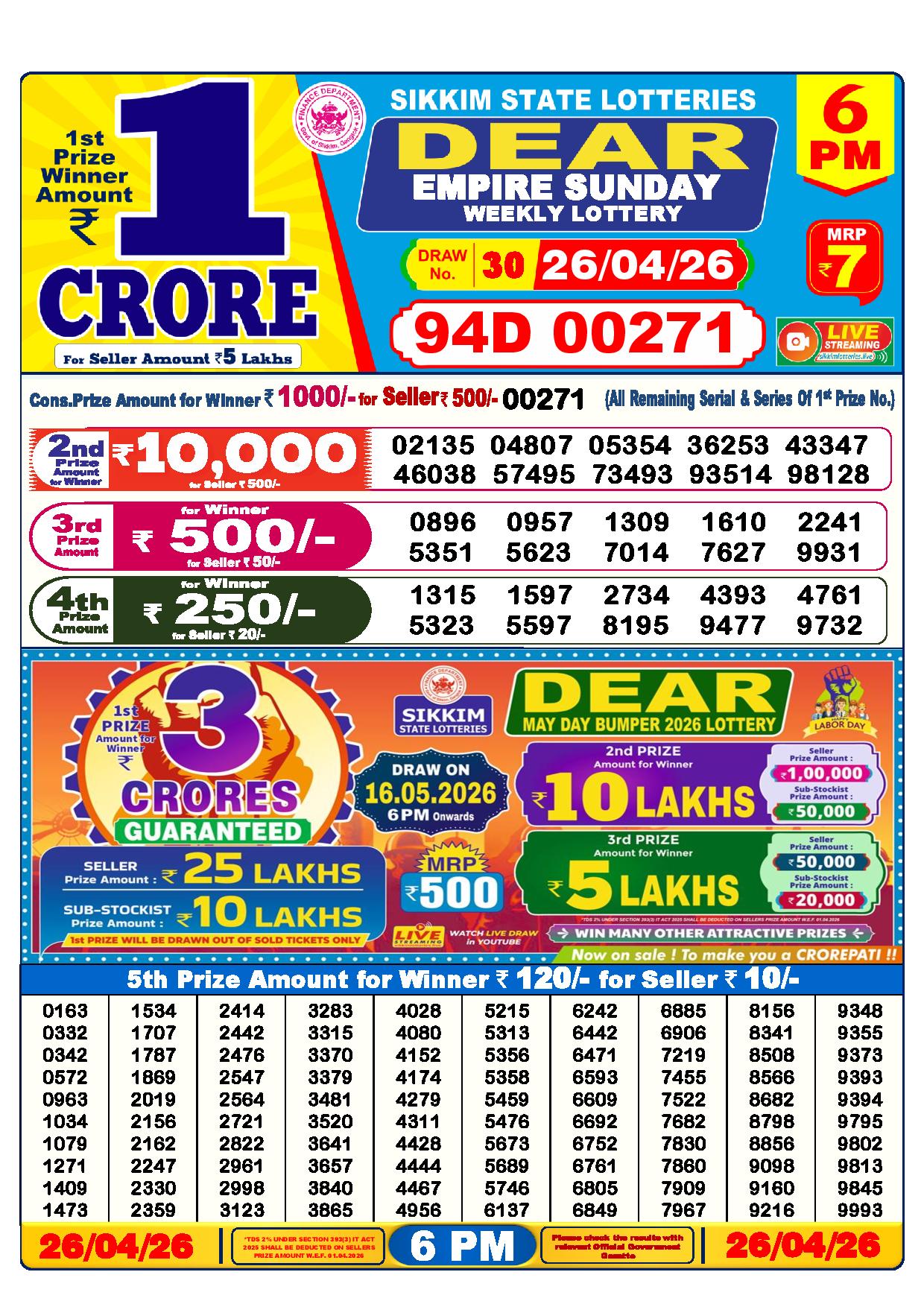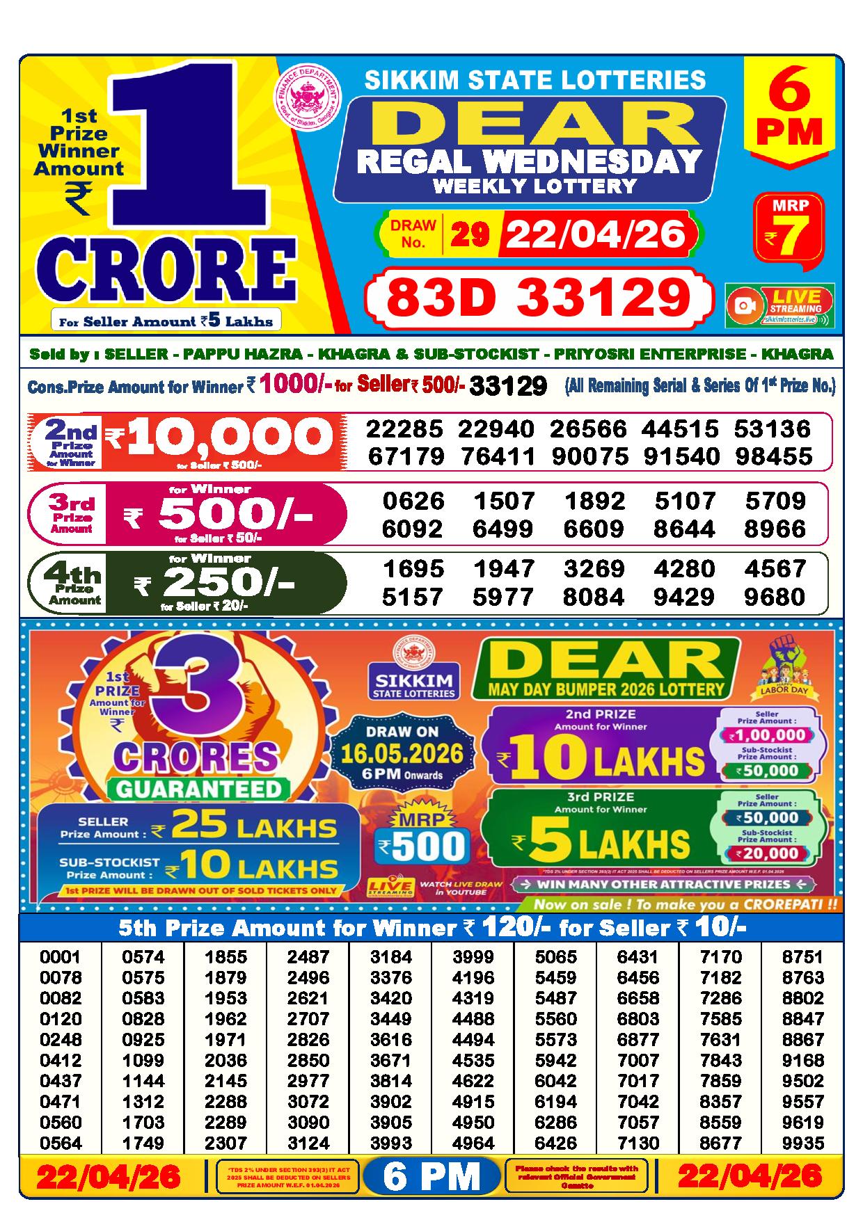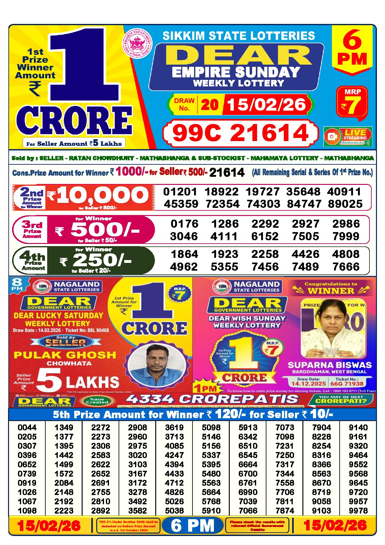 - The Official Government Gazette, Dhankesari, and Dhankesari lottery Sambad publish the lottery results.