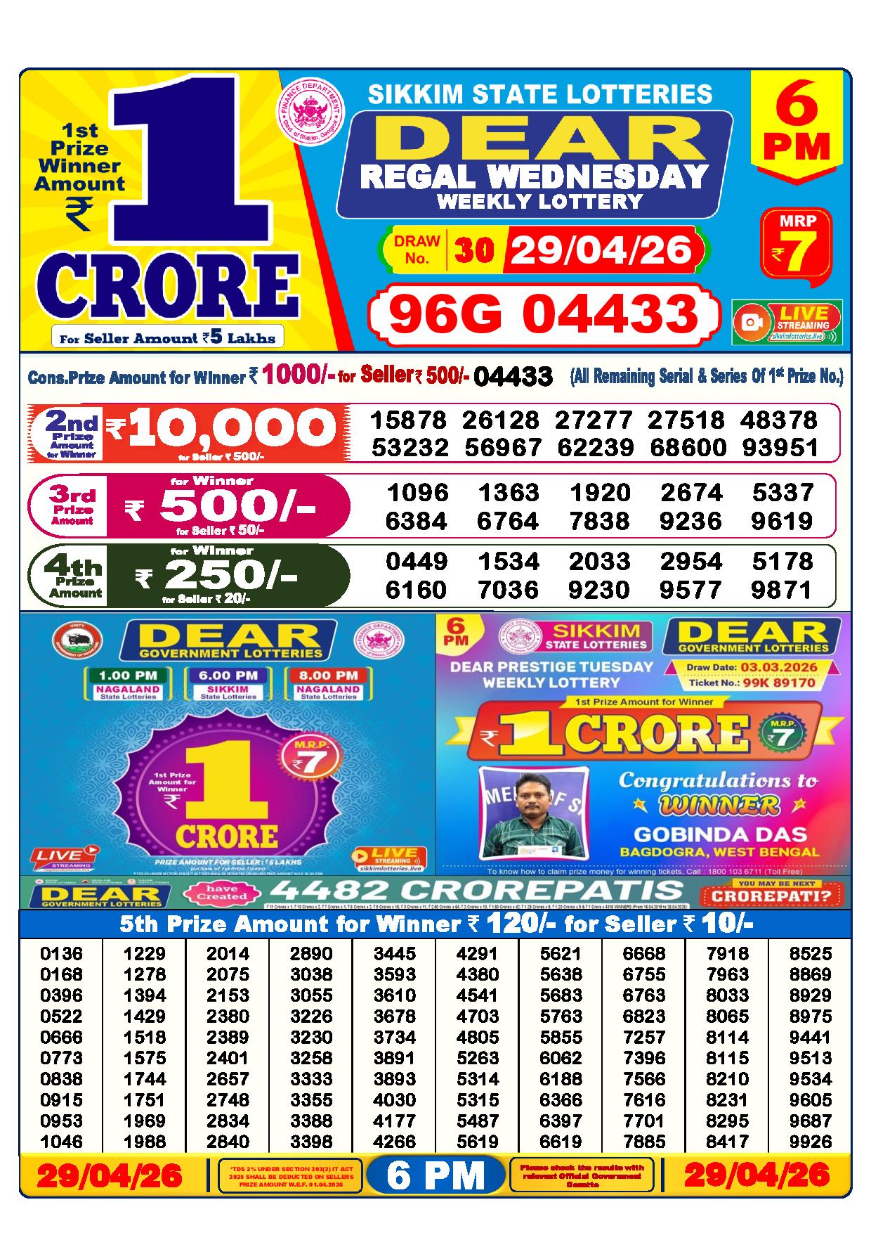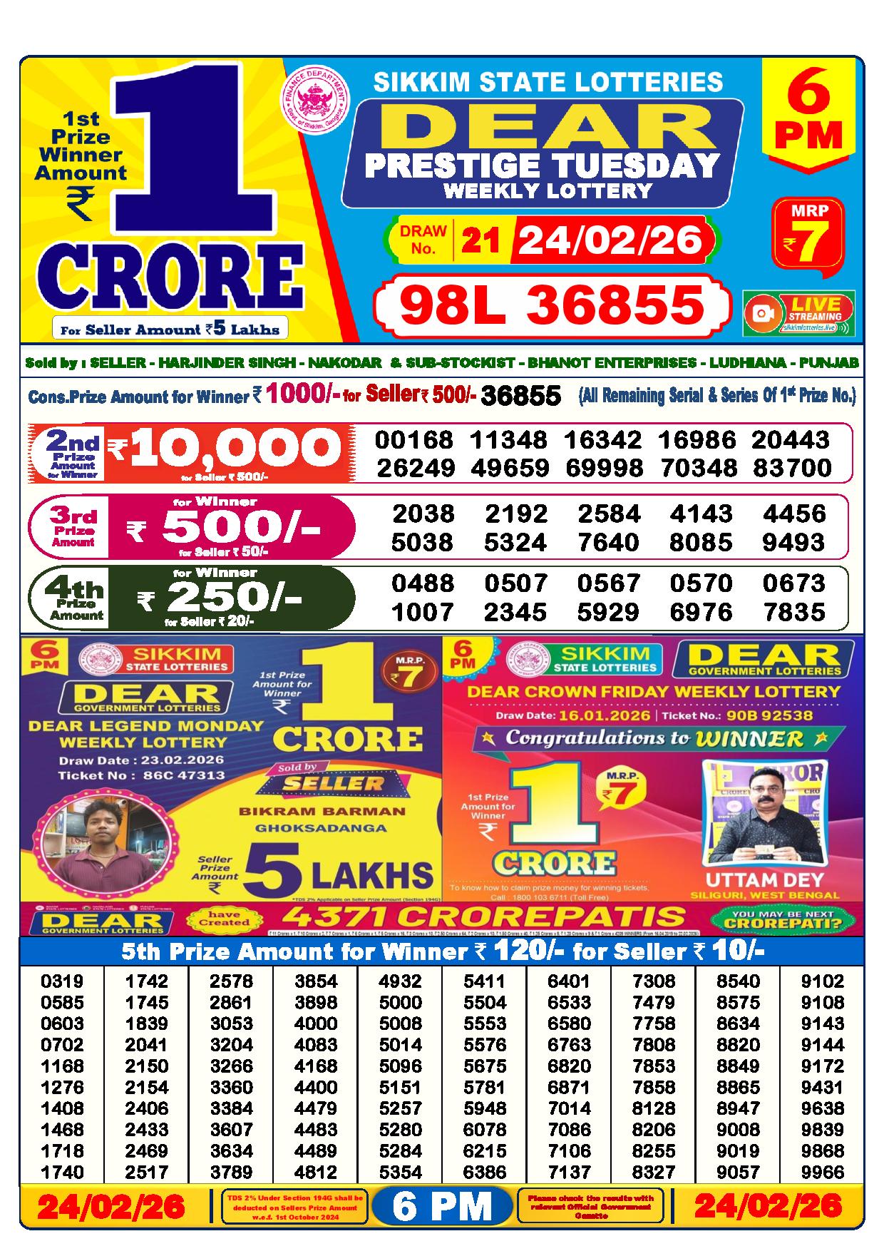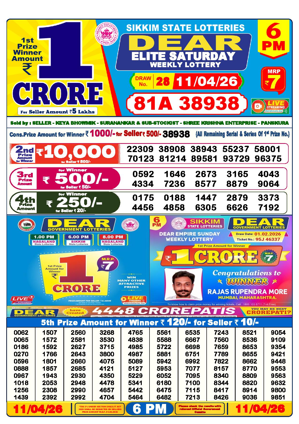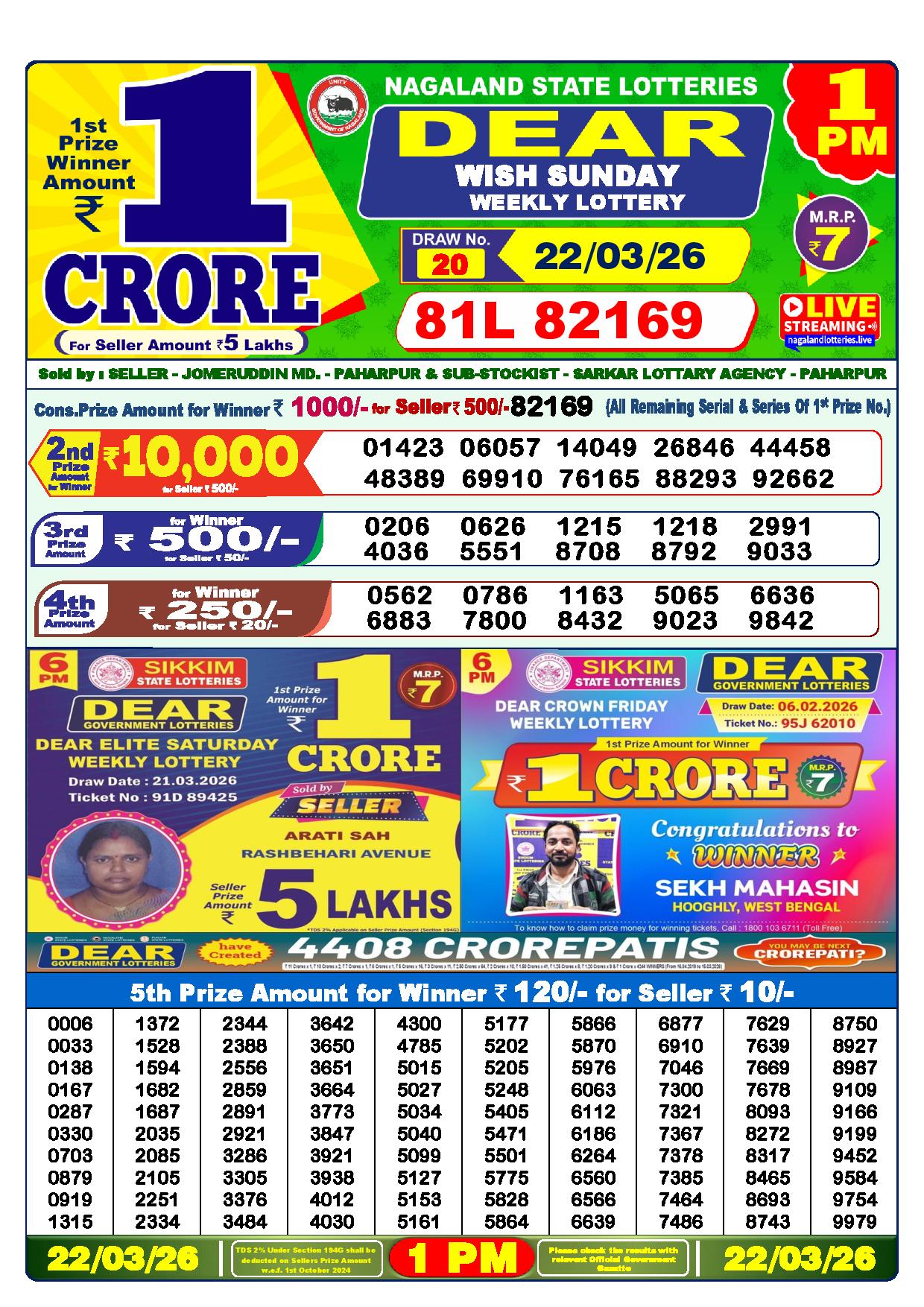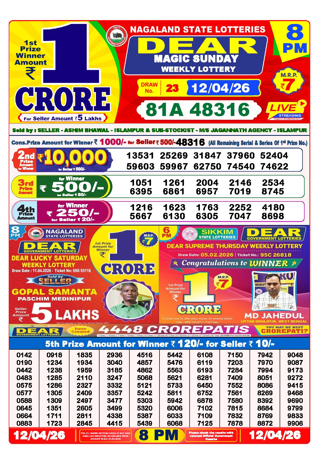 - The Official Government Gazette, Dhankesari, and Dhankesari lottery Sambad publish the lottery results.