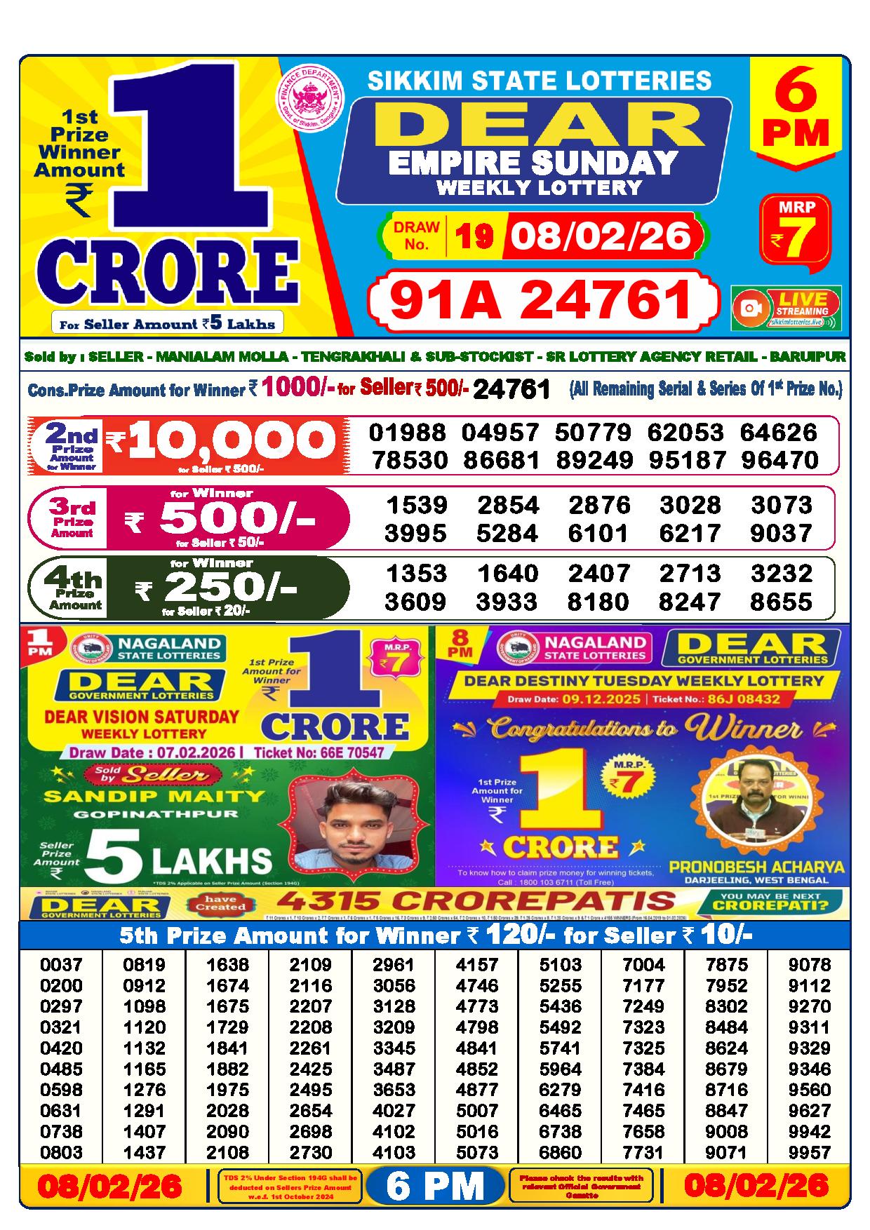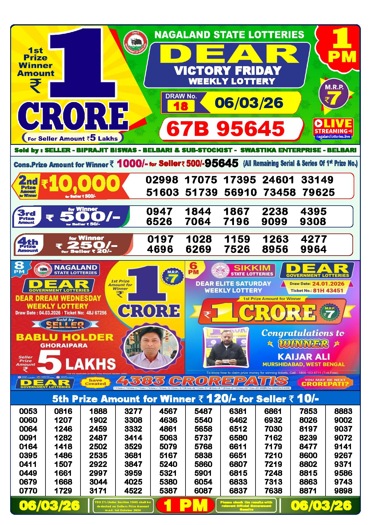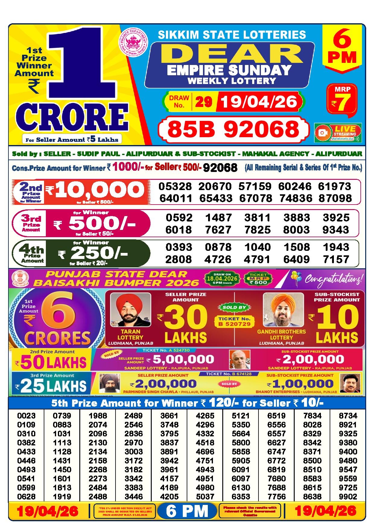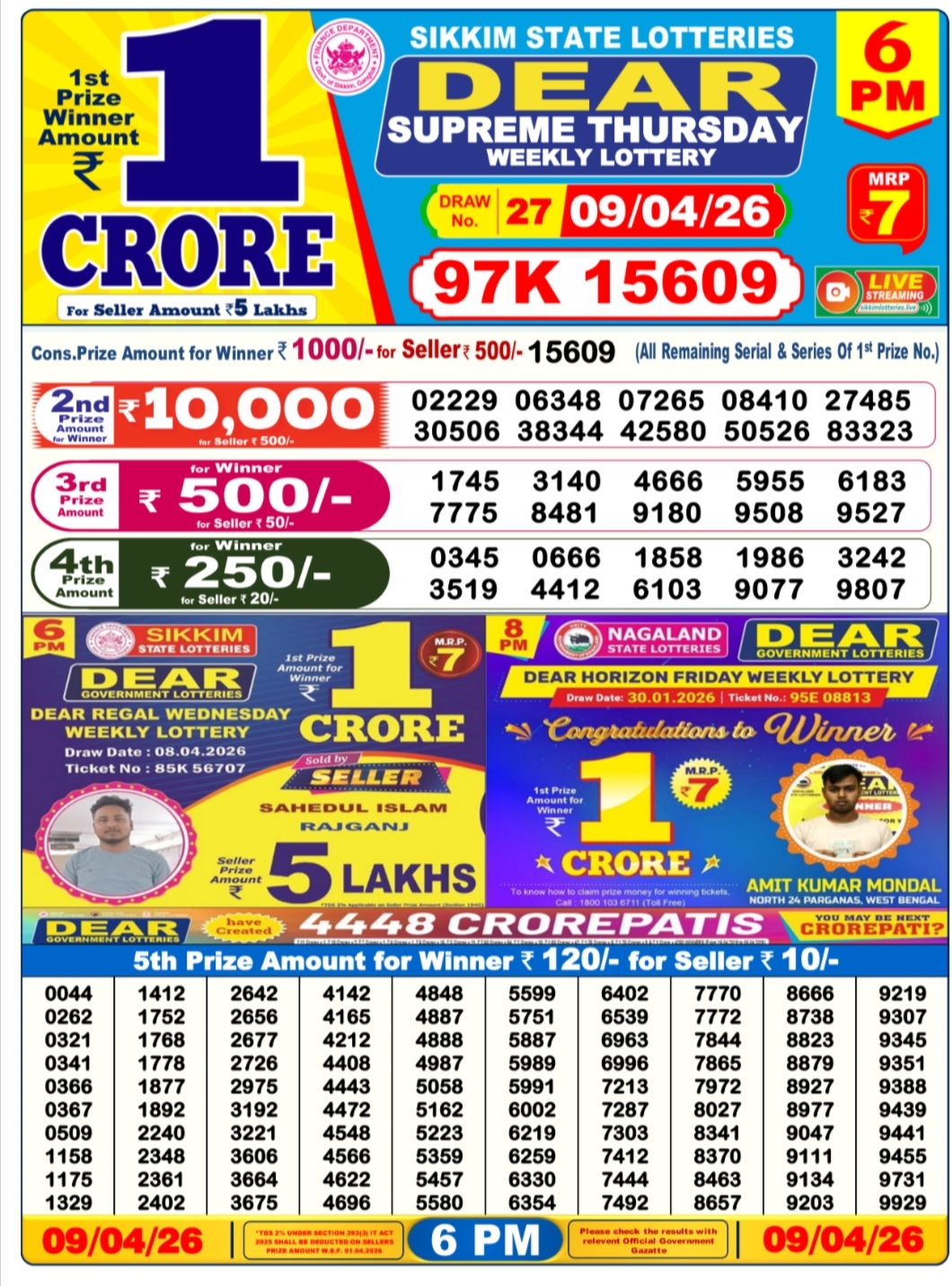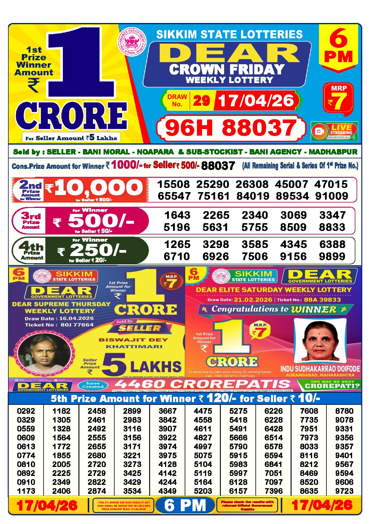 - The Official Government Gazette, Dhankesari, and Dhankesari lottery Sambad publish the lottery results.