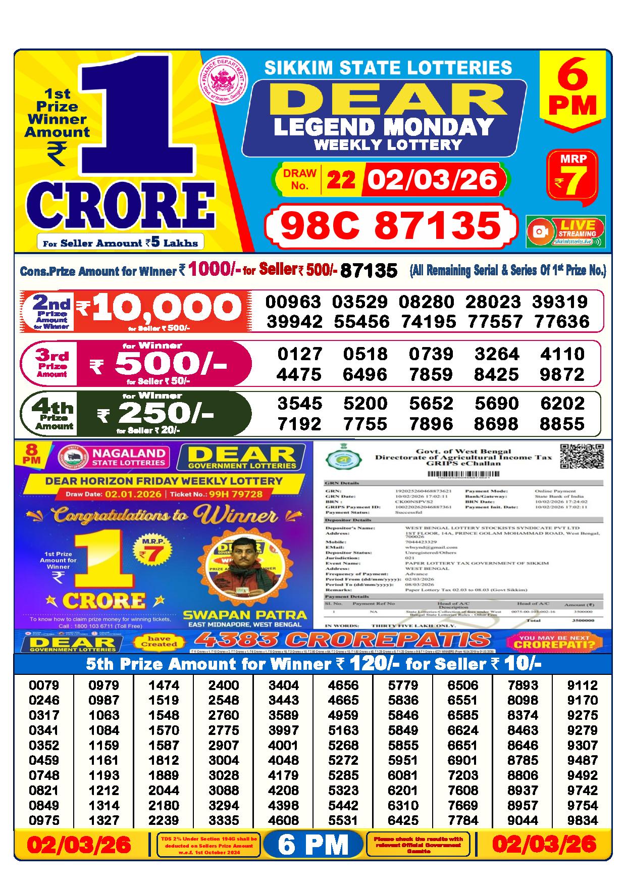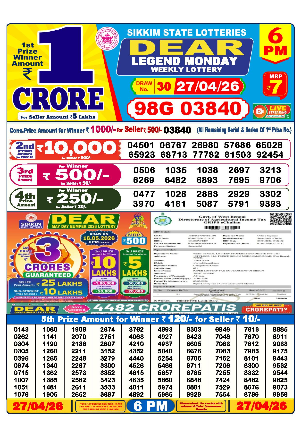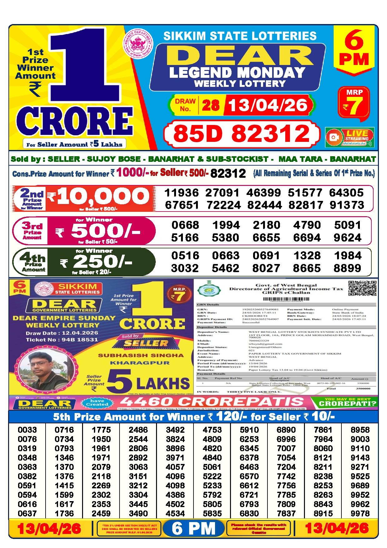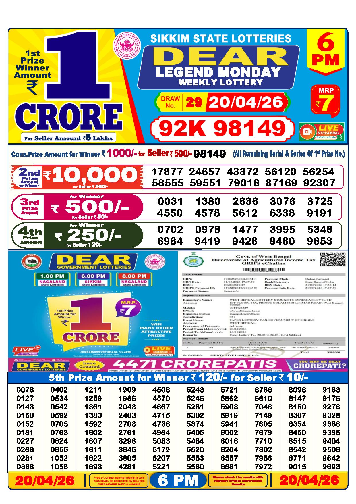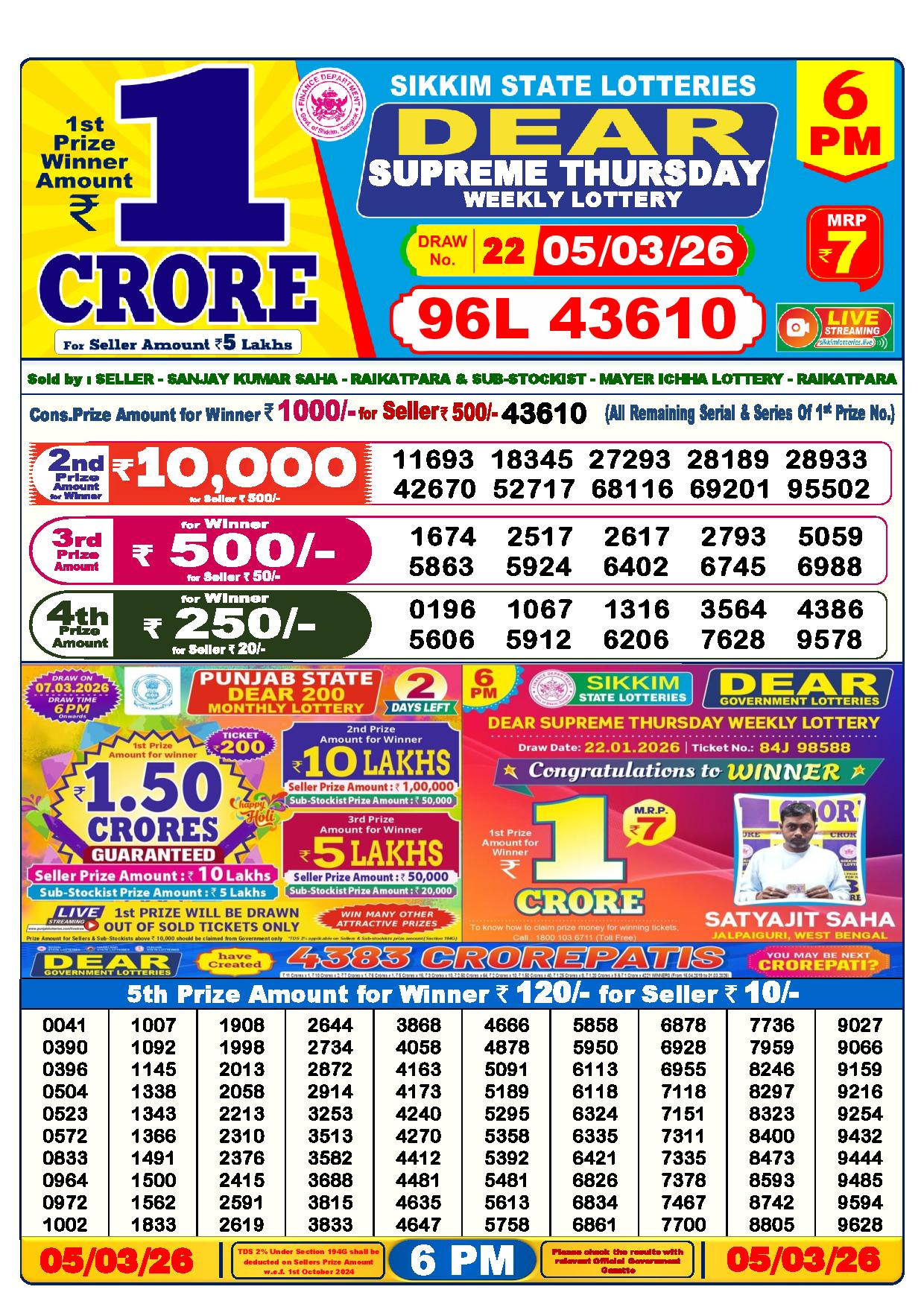 - The Official Government Gazette, Dhankesari, and Dhankesari lottery Sambad publish the lottery results.