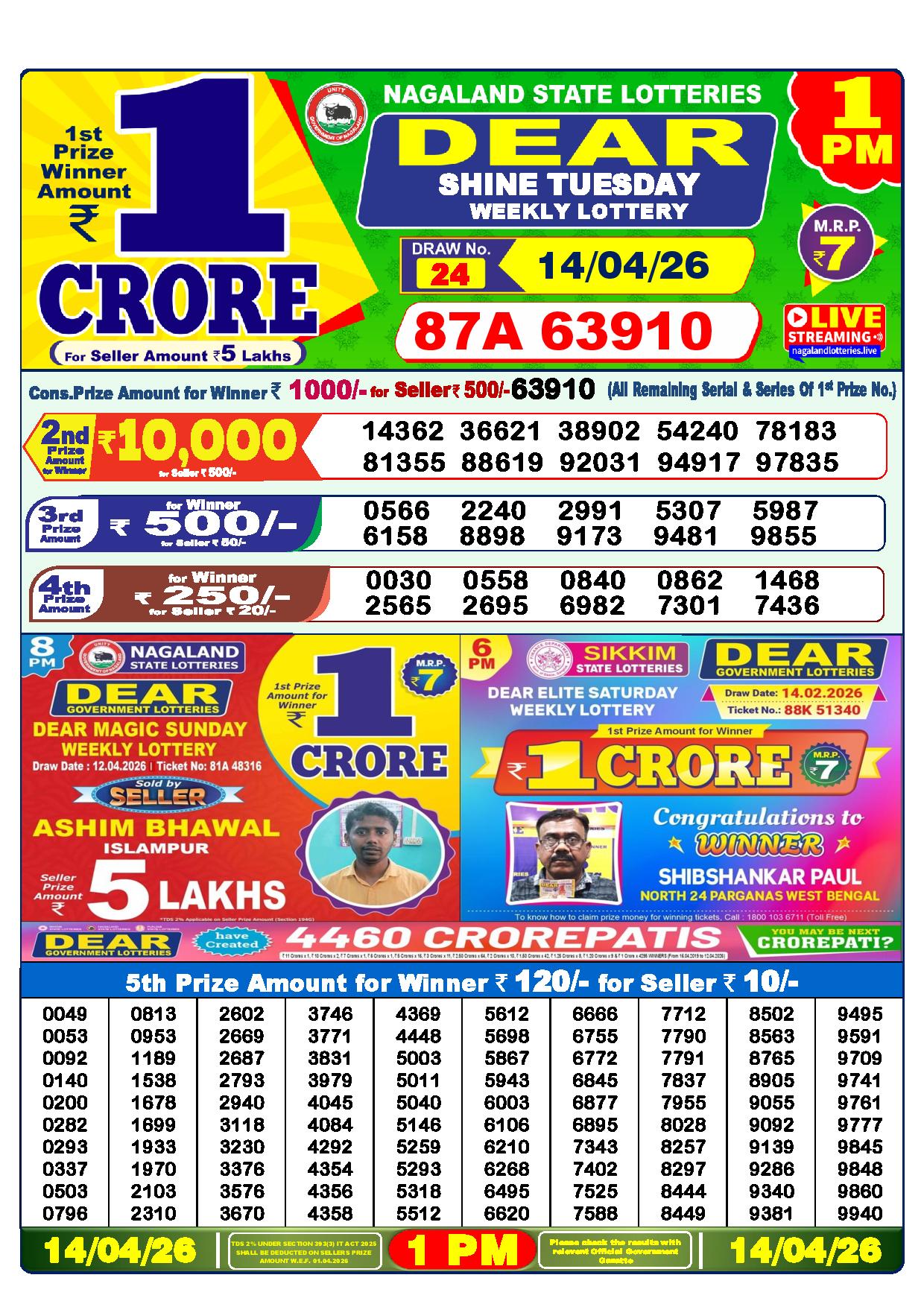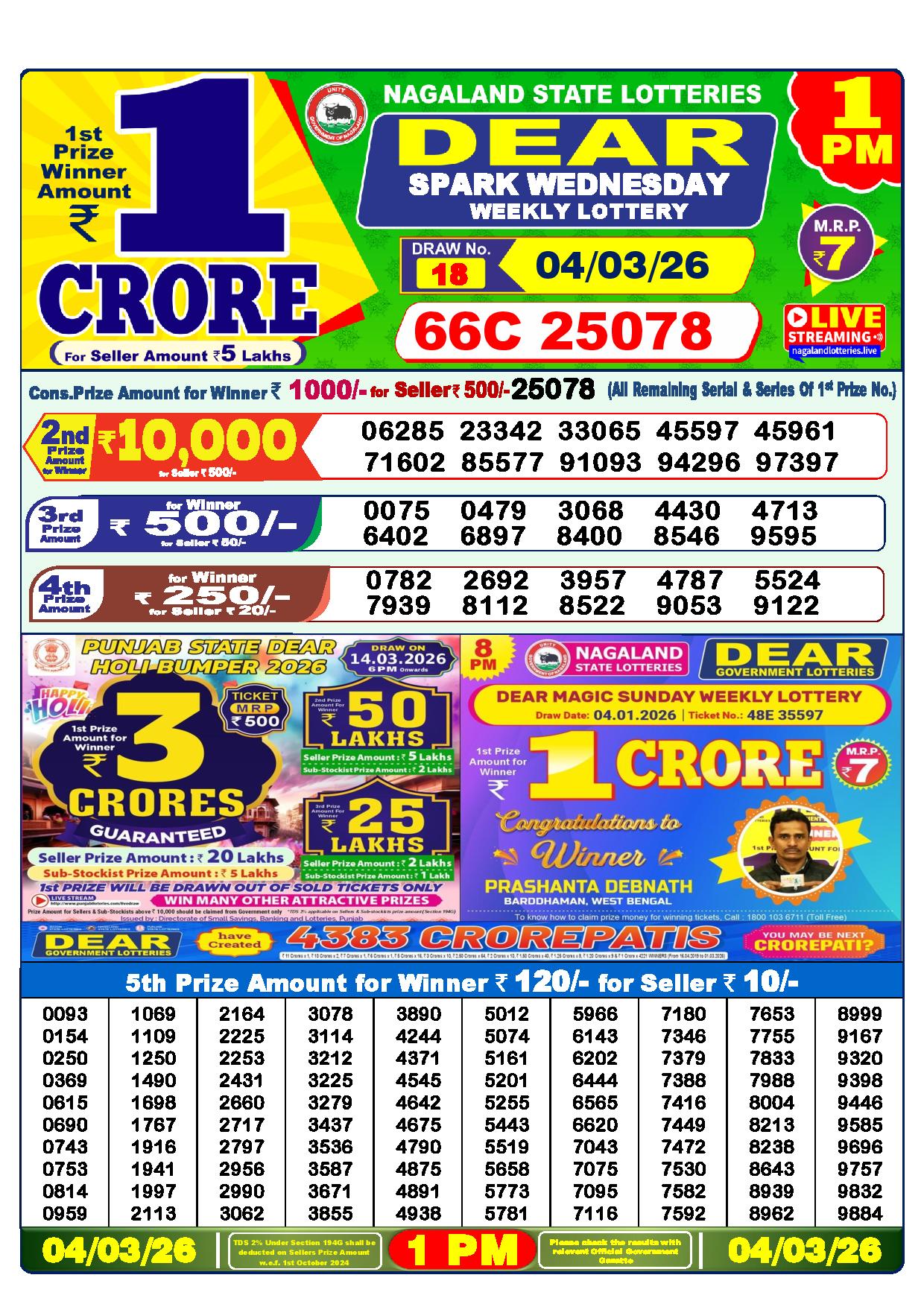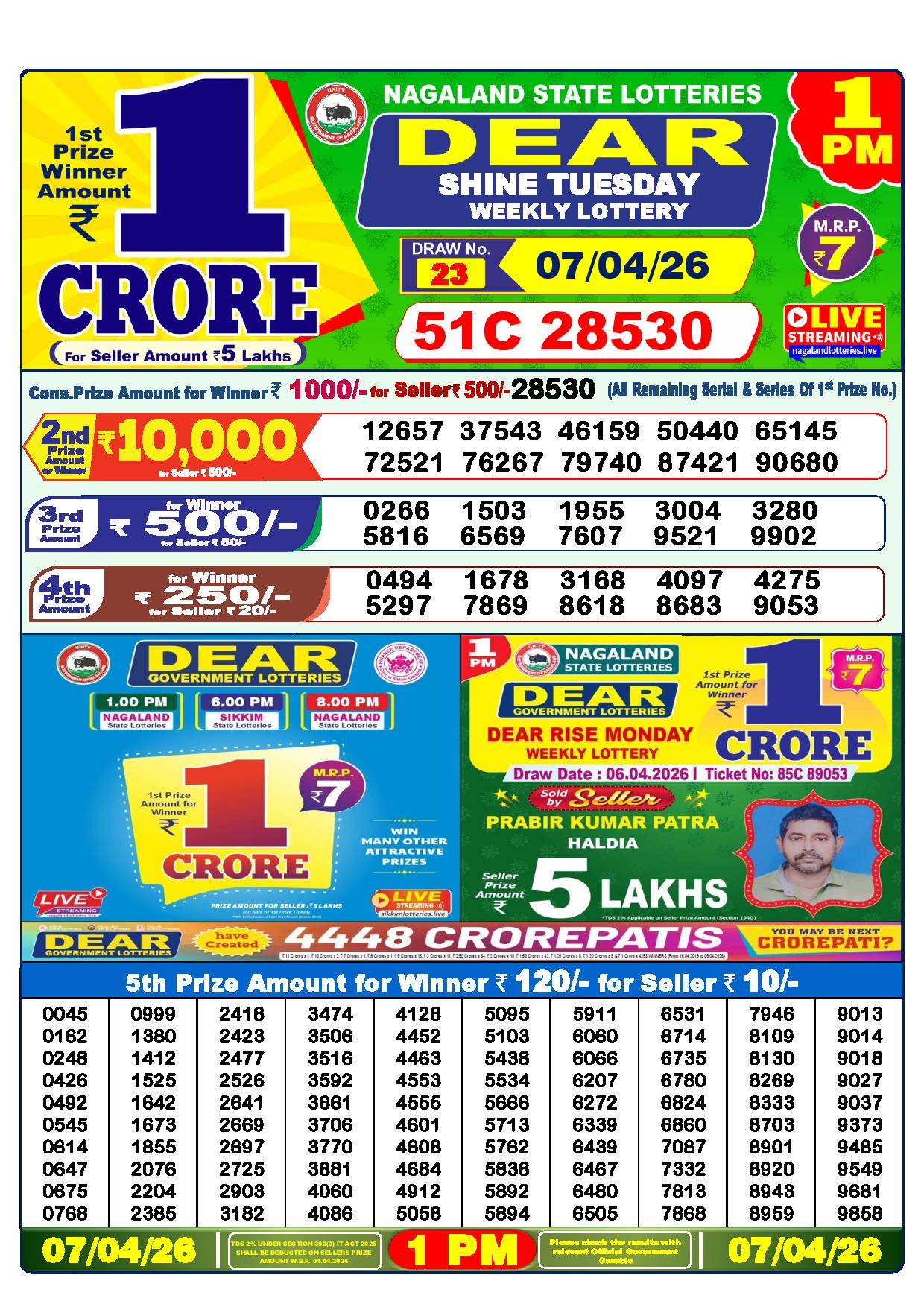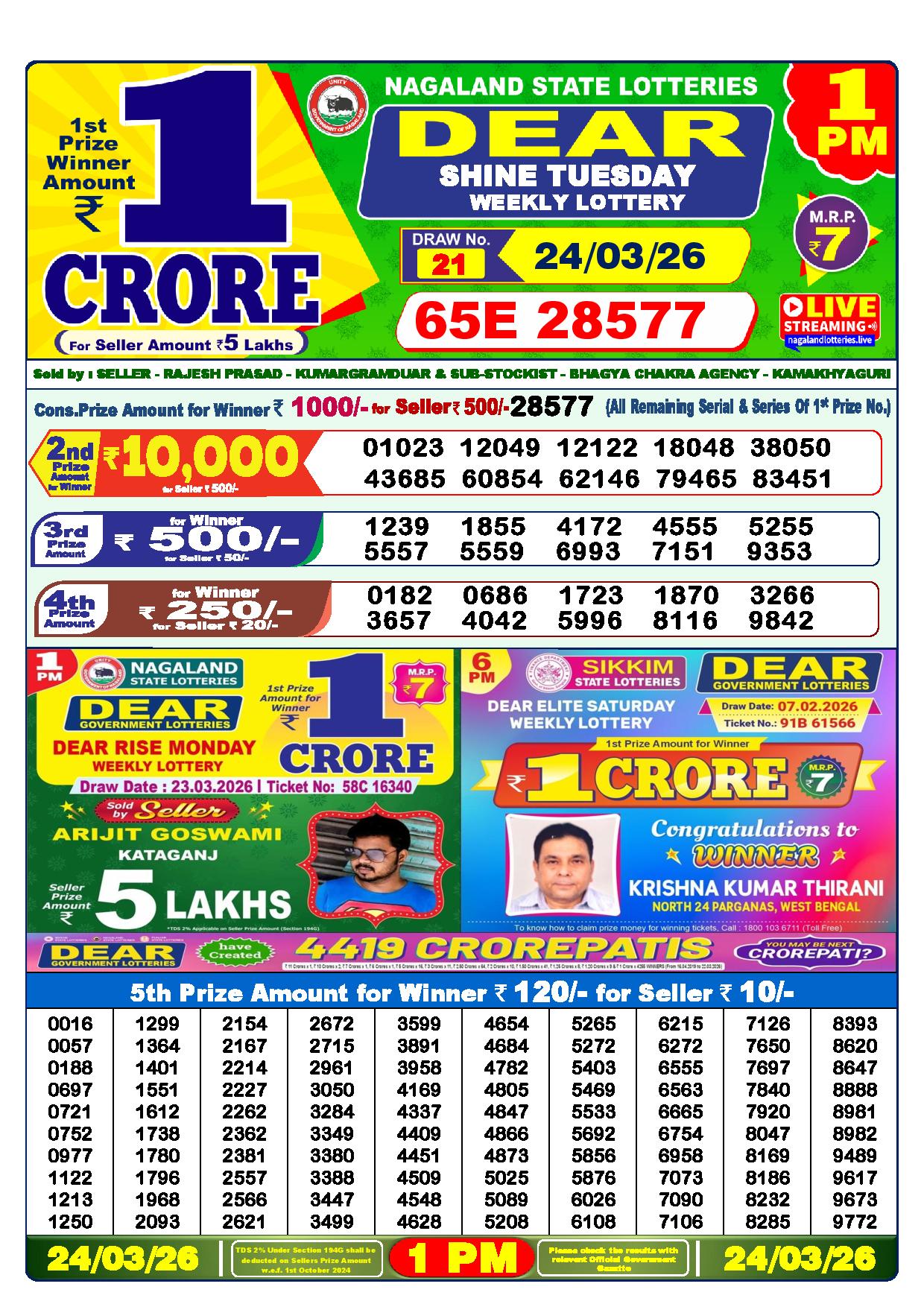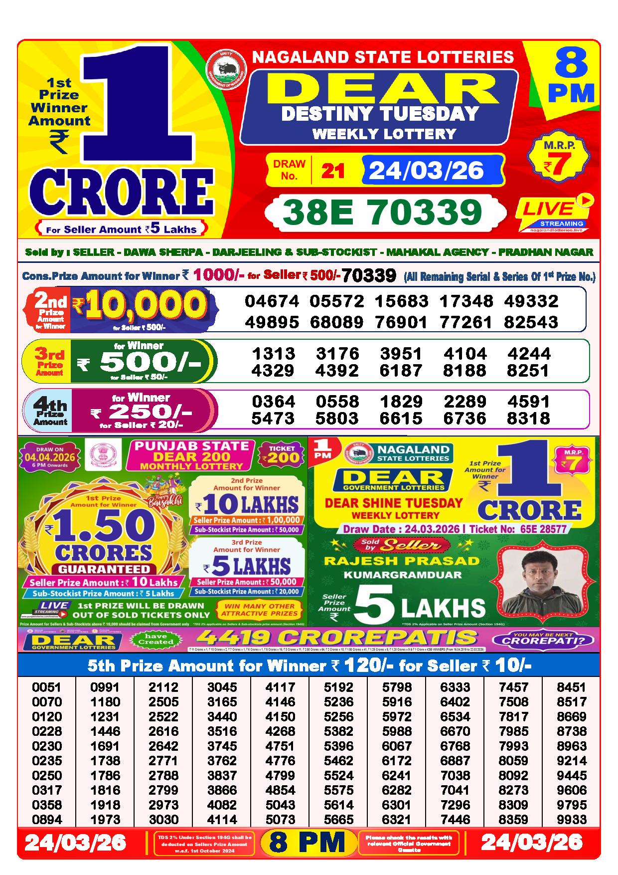 Today Nagaland State Dhankesari Lottery Results
