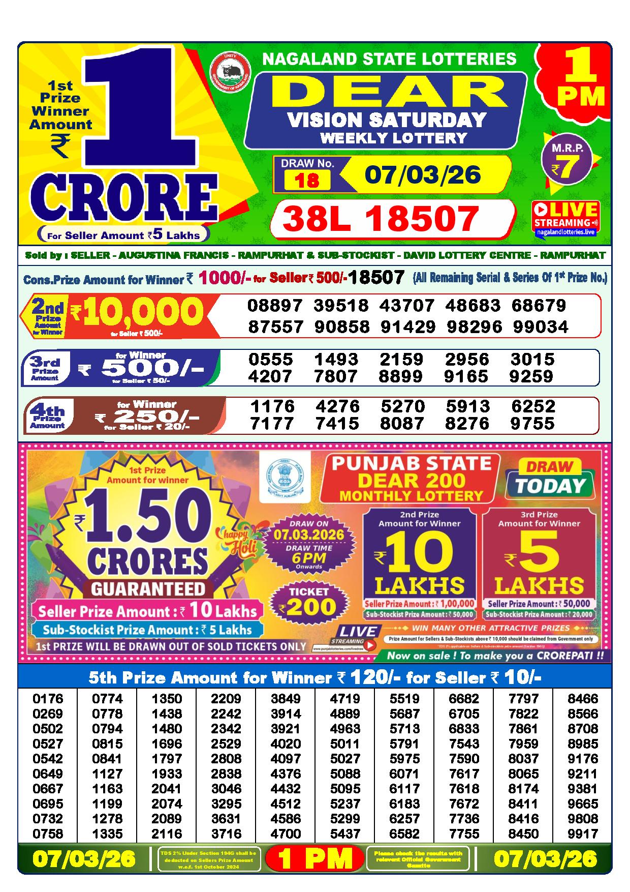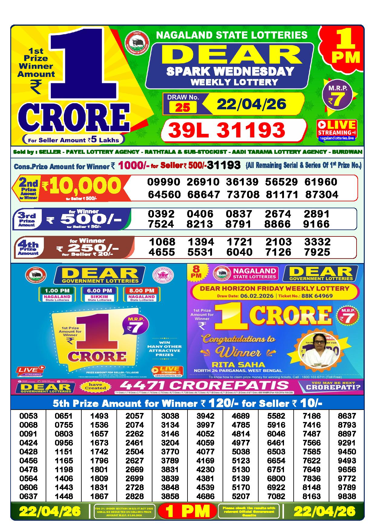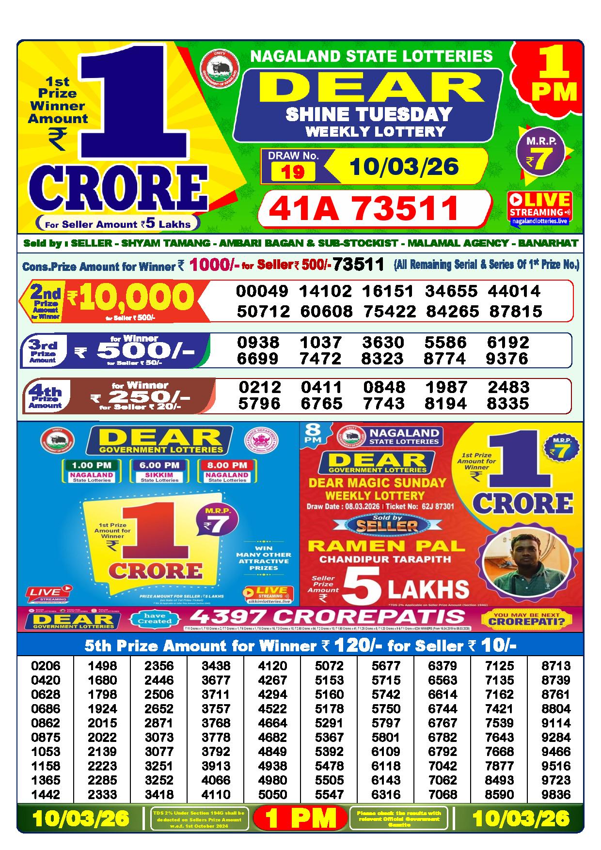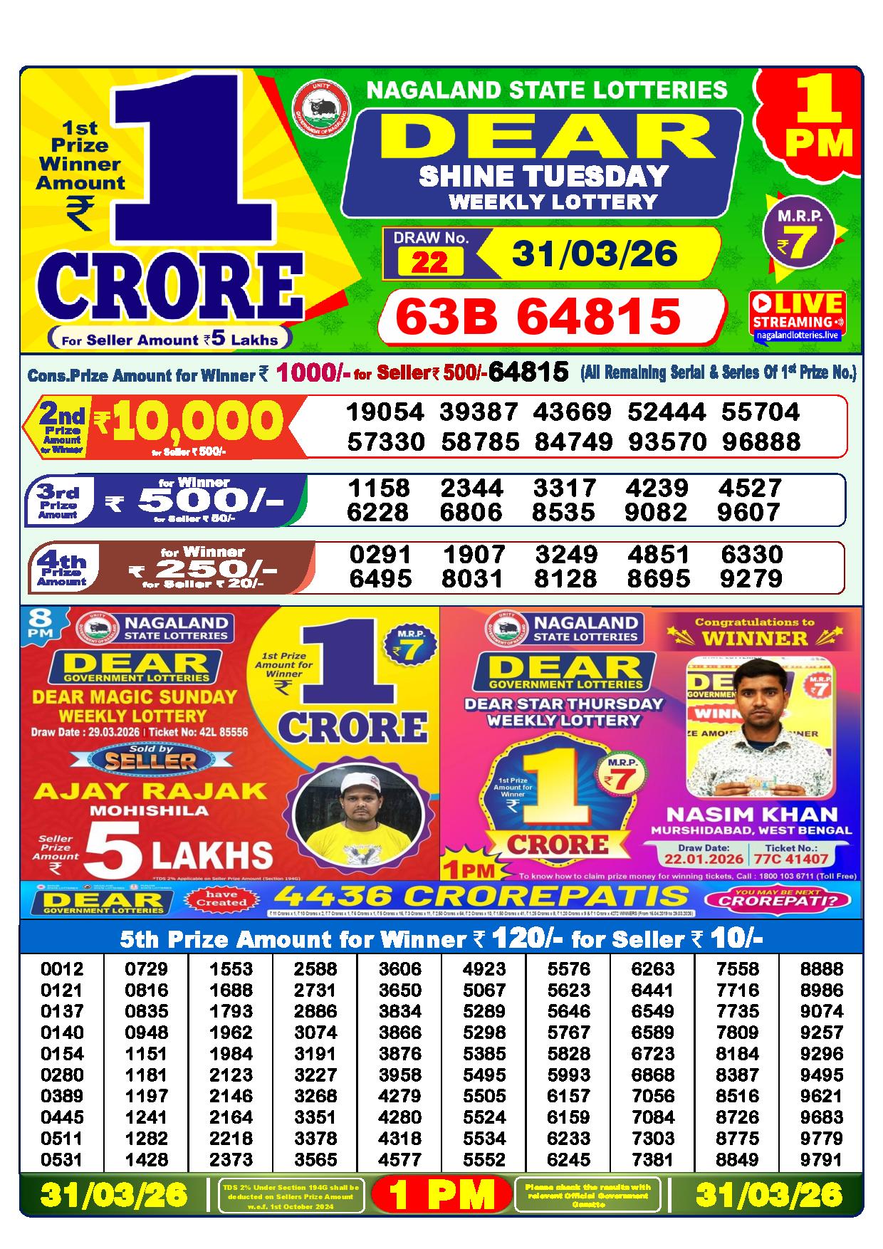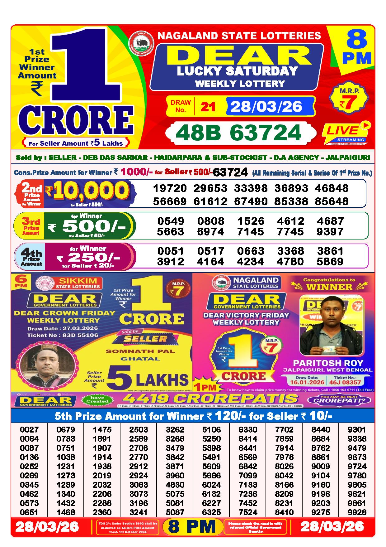 Today Nagaland State Dhankesari Lottery Results