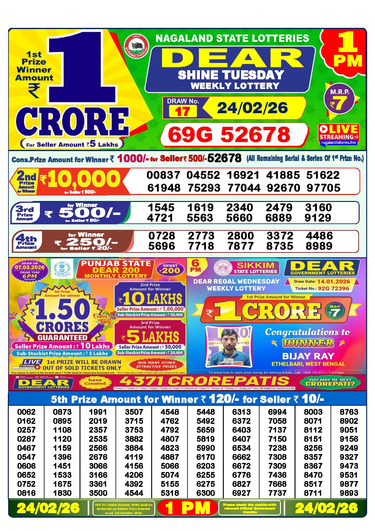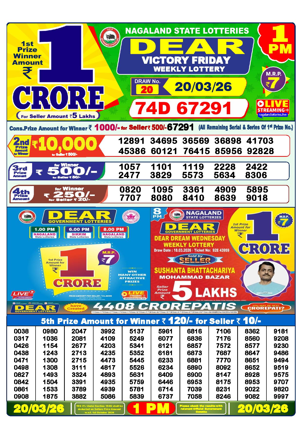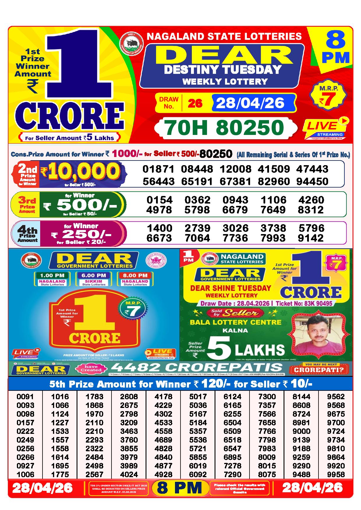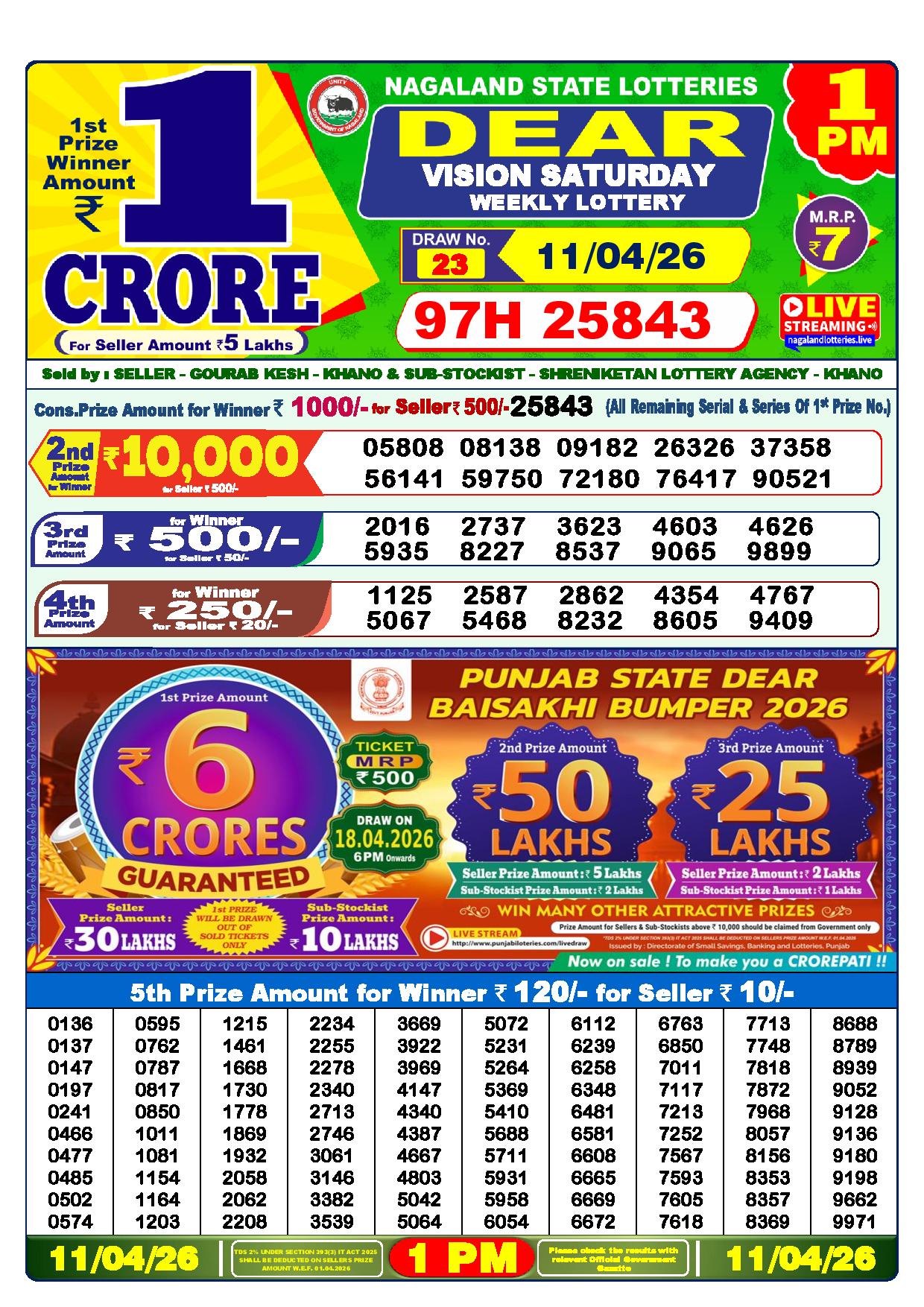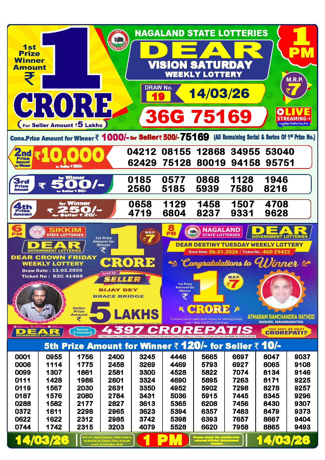 Today Nagaland State Dhankesari Lottery Results