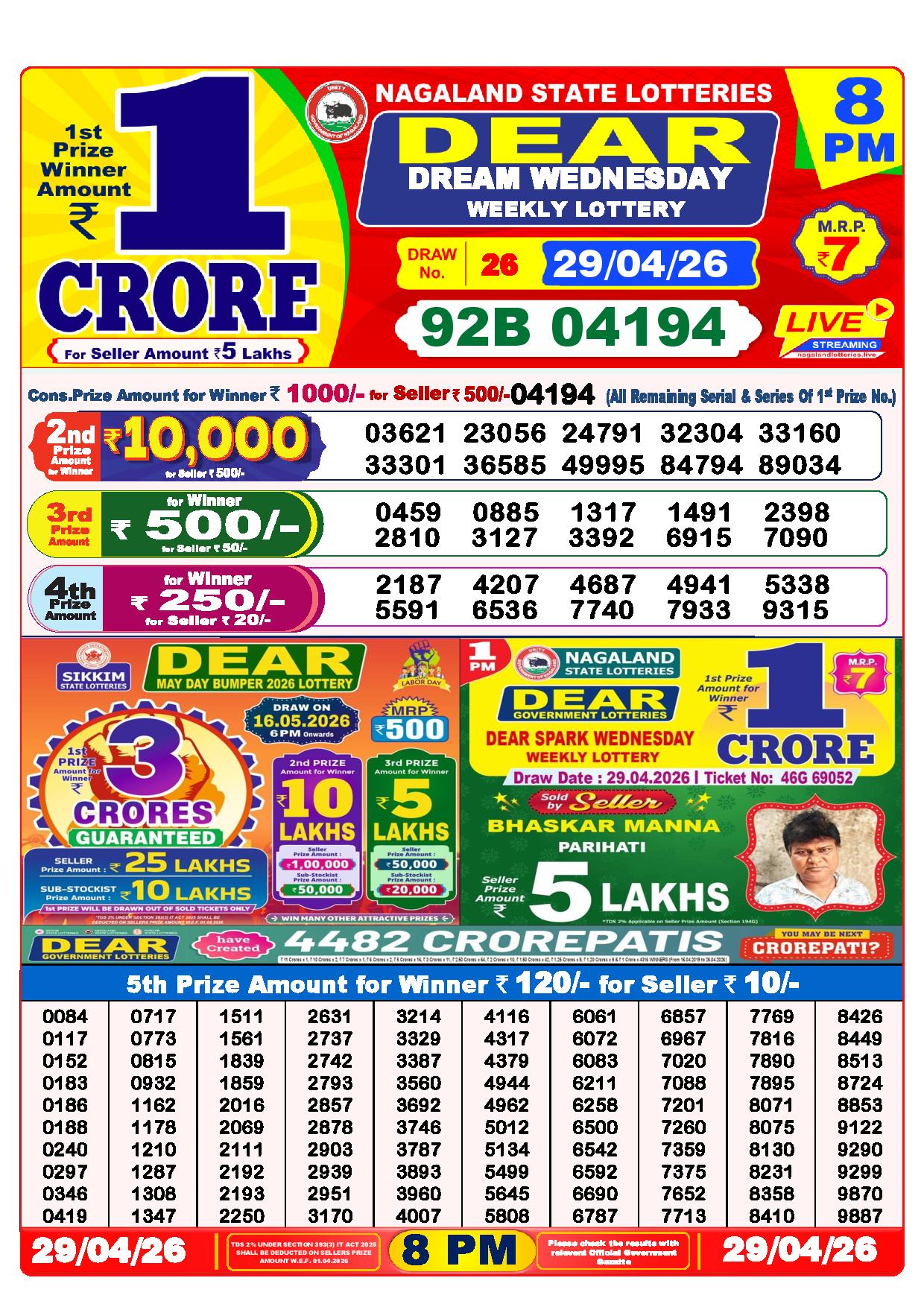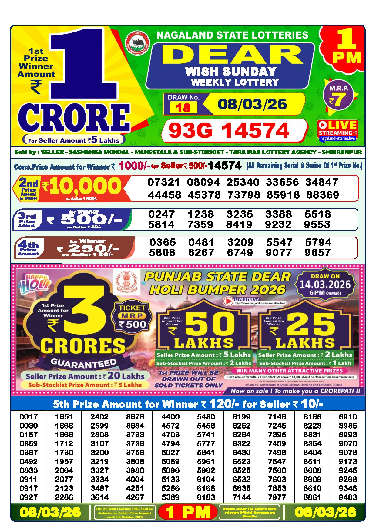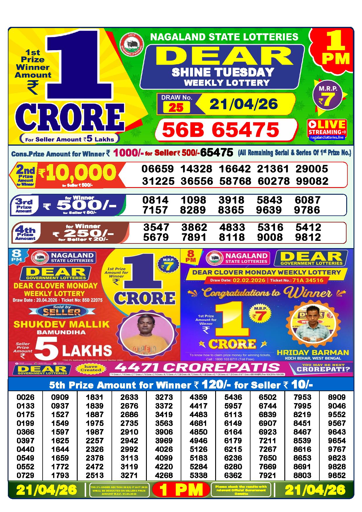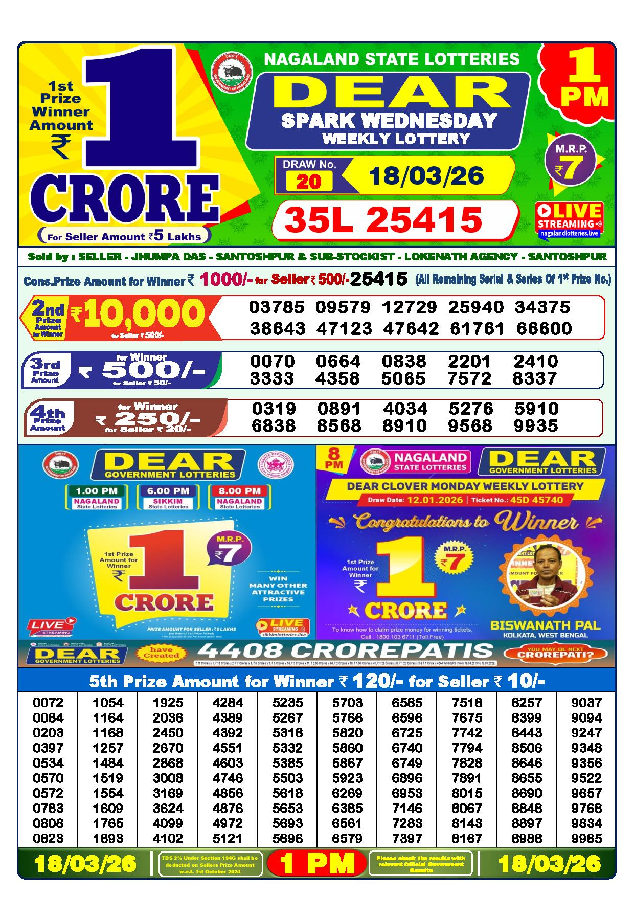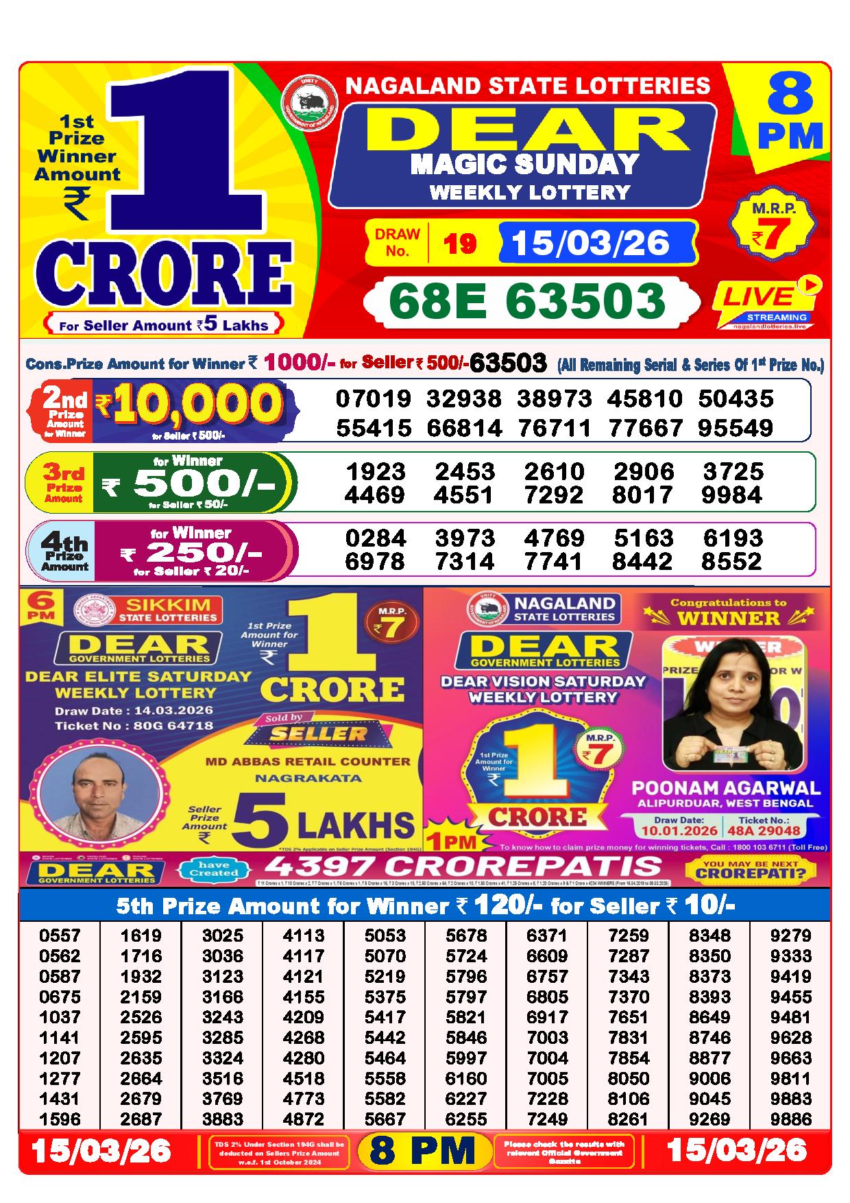 Today Nagaland State Dhankesari Lottery Results