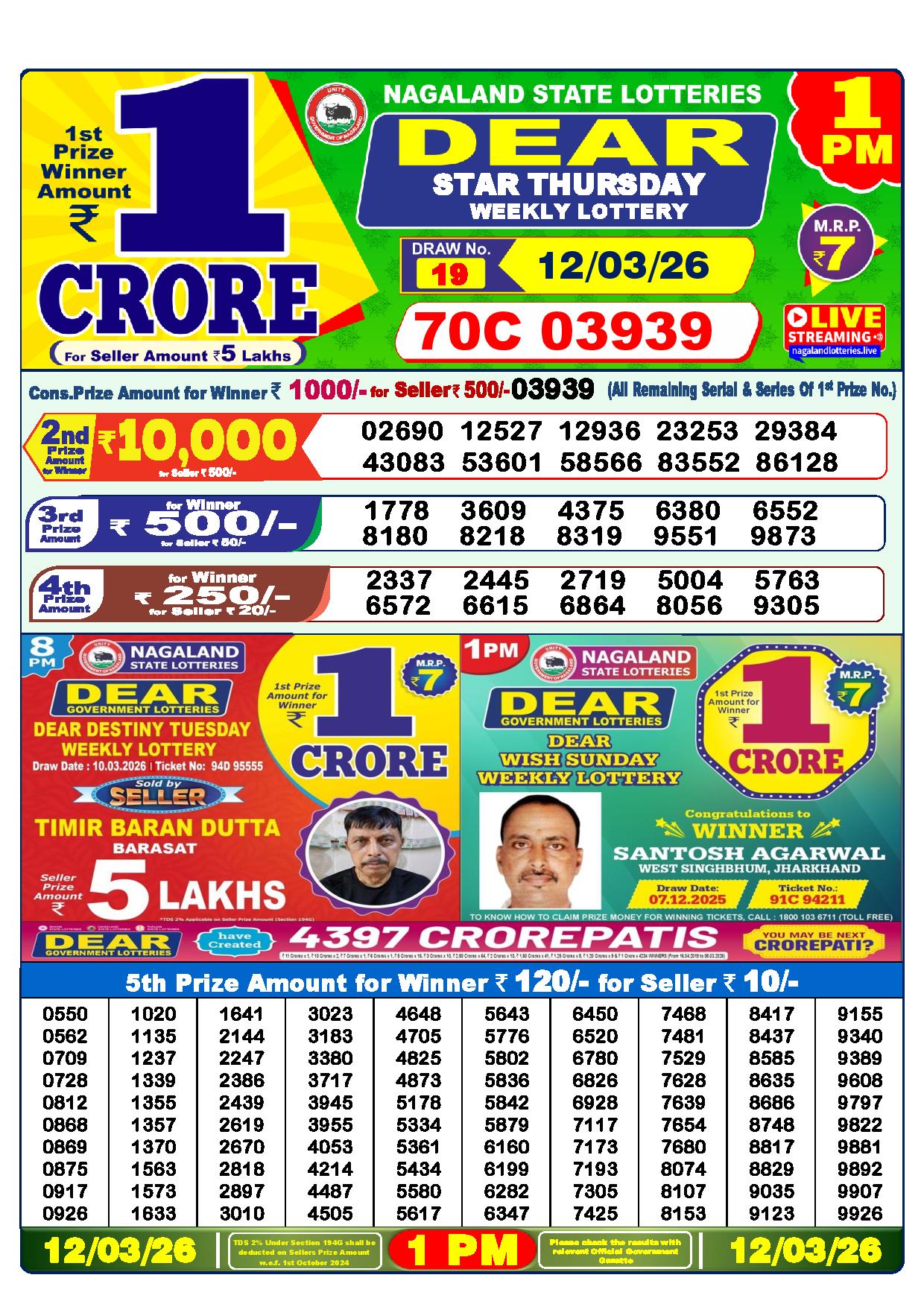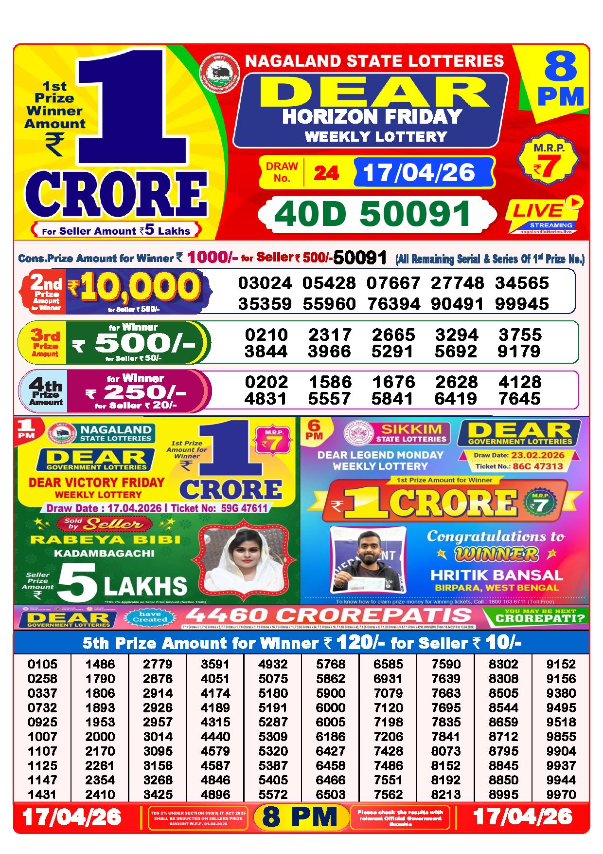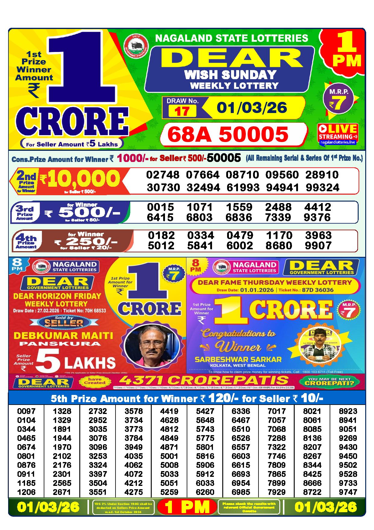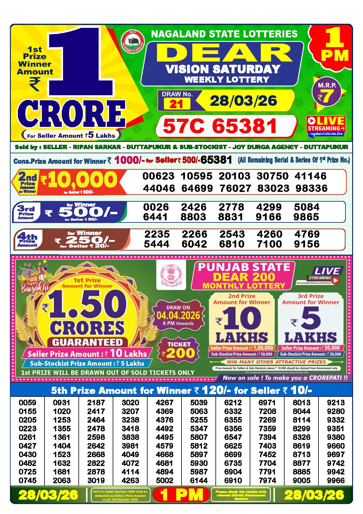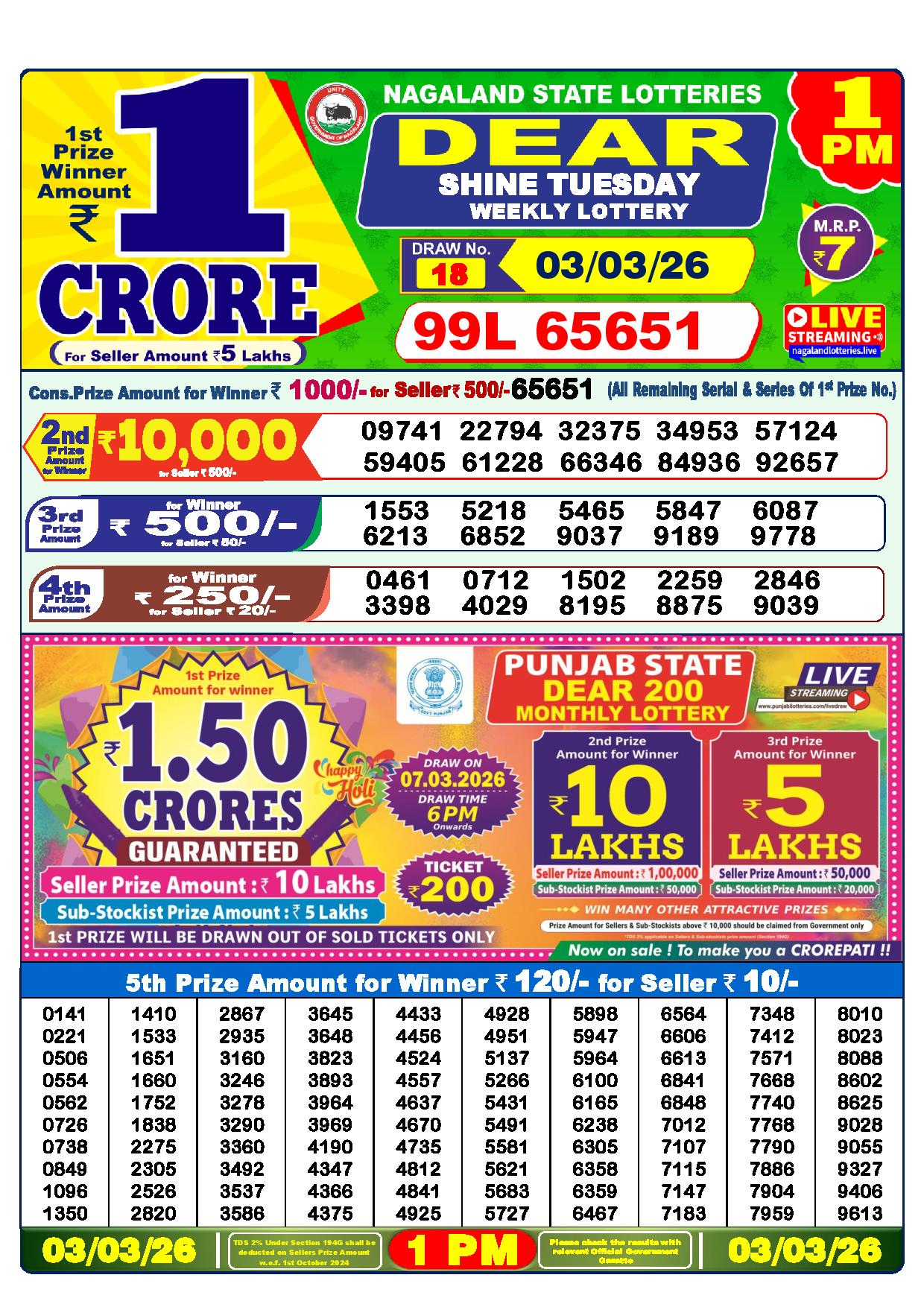 Today Nagaland State Dhankesari Lottery Results