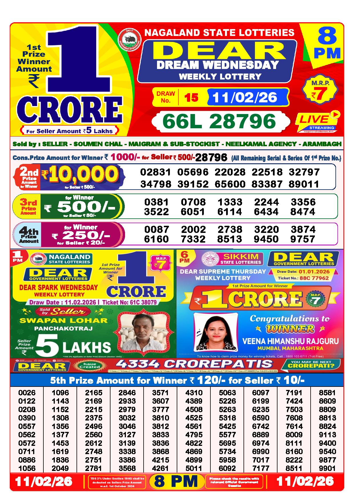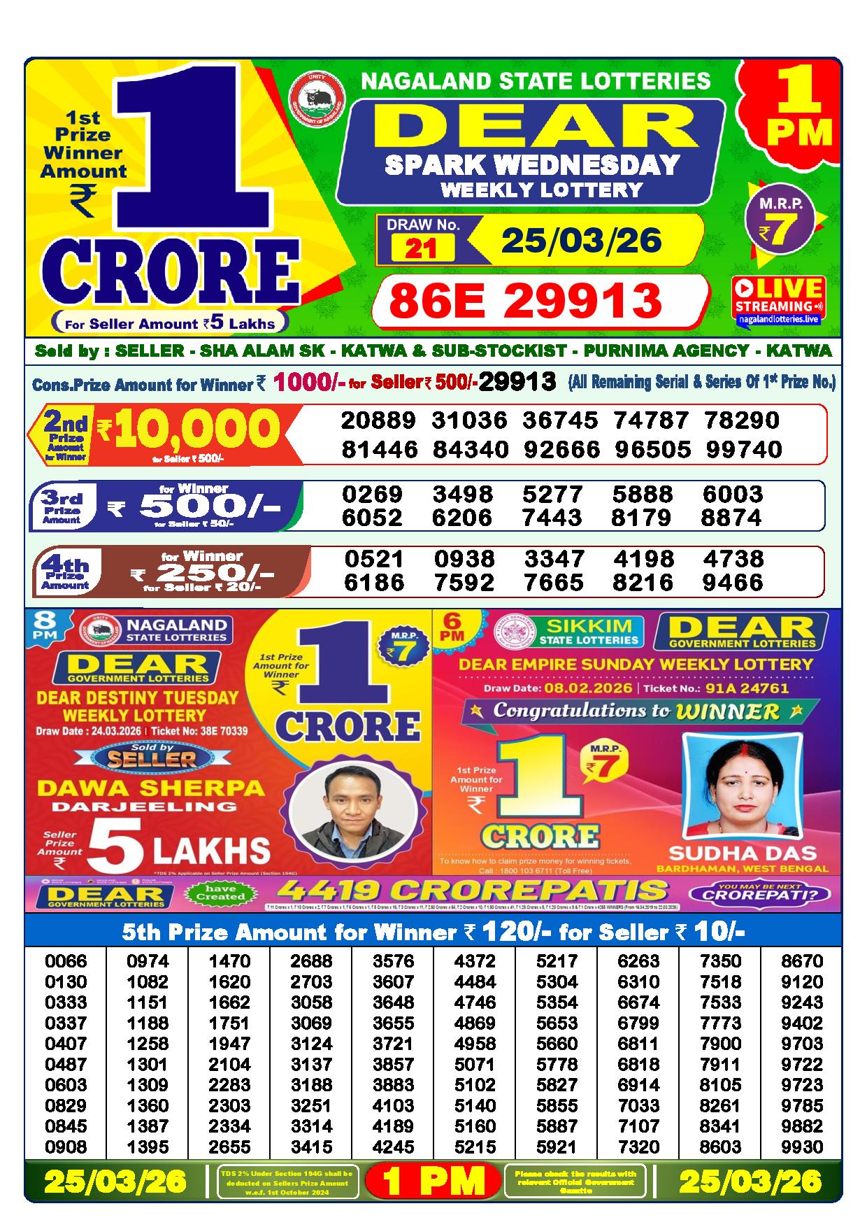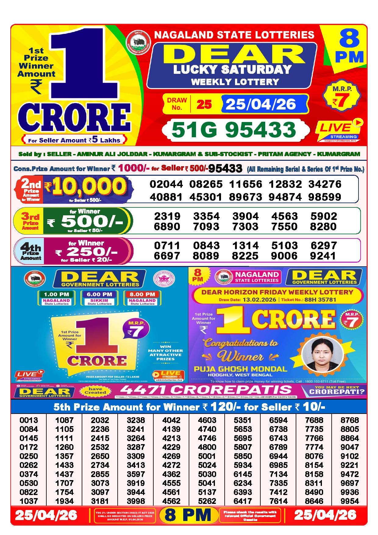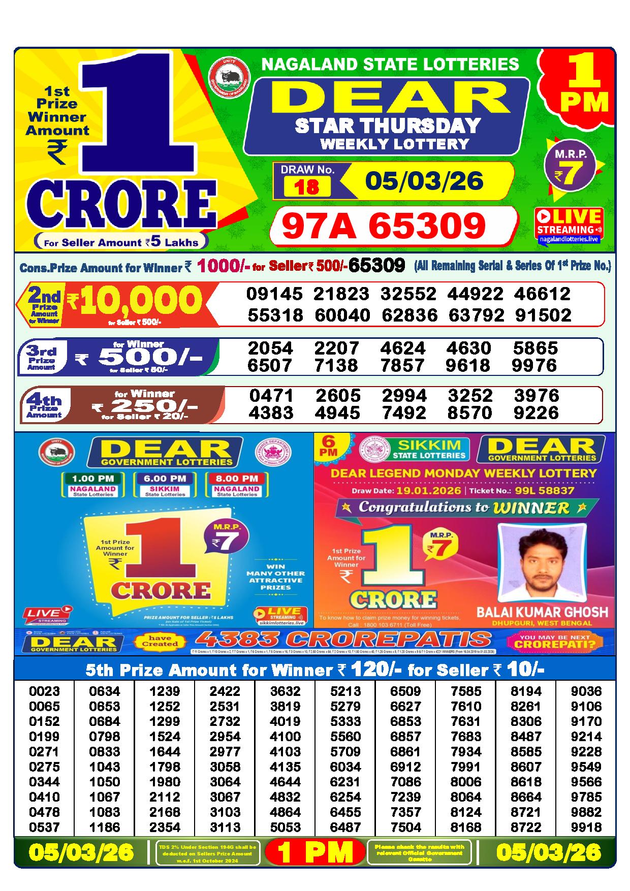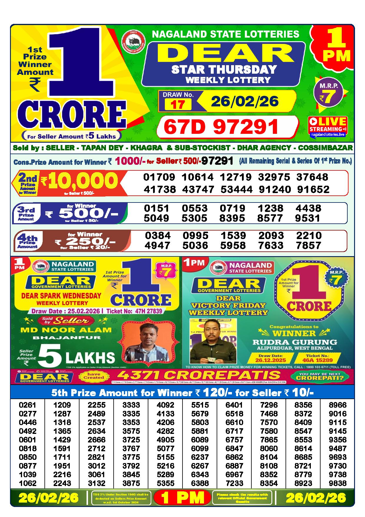 Today Nagaland State Dhankesari Lottery Results