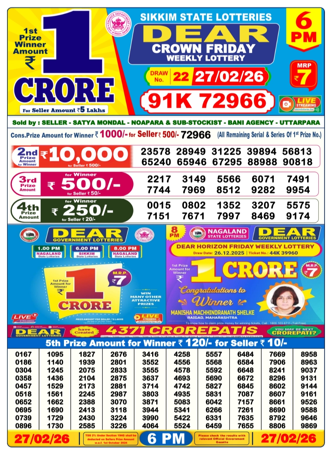 Important Data about the Nagaland State Lottery