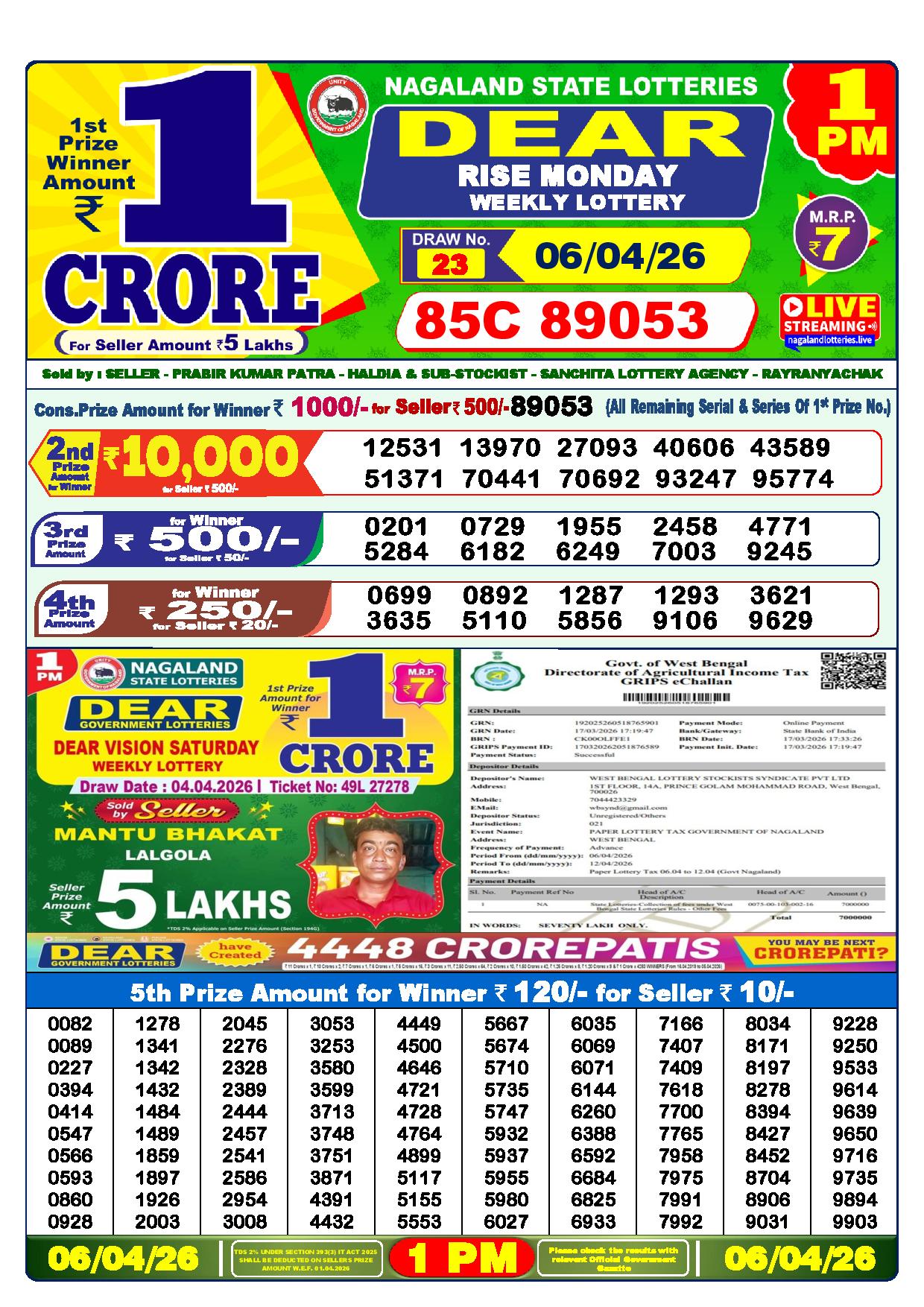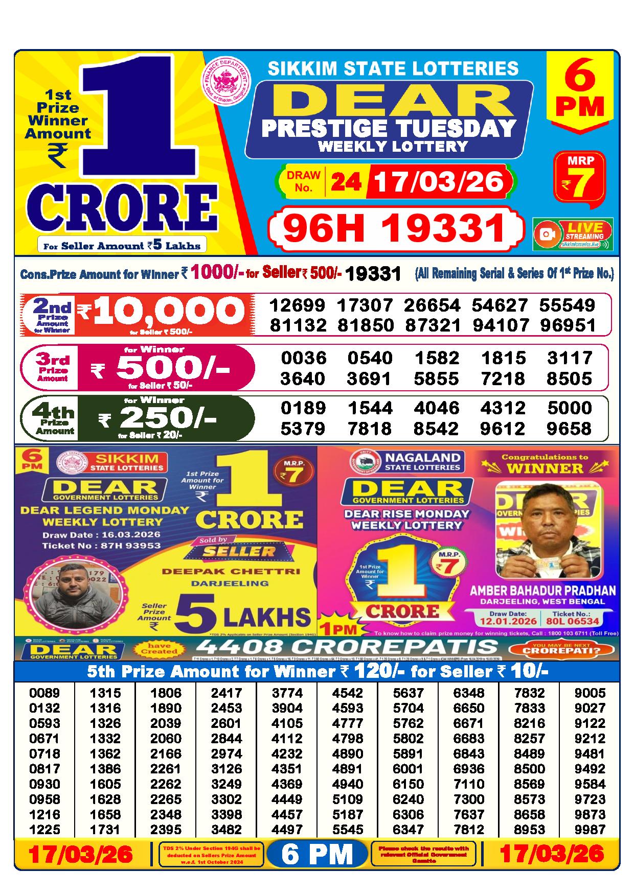 Wonderful news! The 6 PM results have just been released by the Nagaland State Lottery Department. With love, Dhankesari lottery sambad. This is your opportunity to see if luck has been on your side at Dhankesari today result. Fantastic rewards are up for grabs in this 6 pm result.