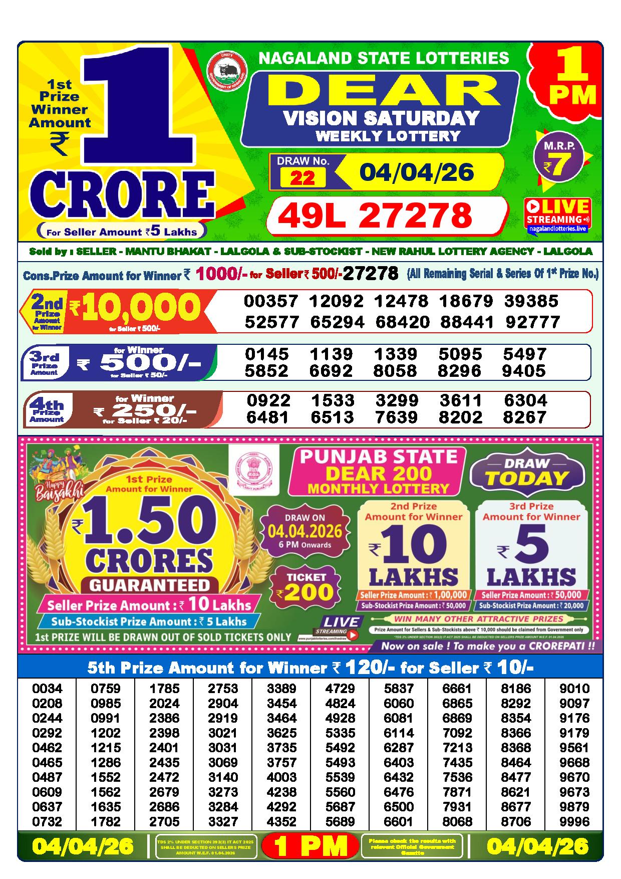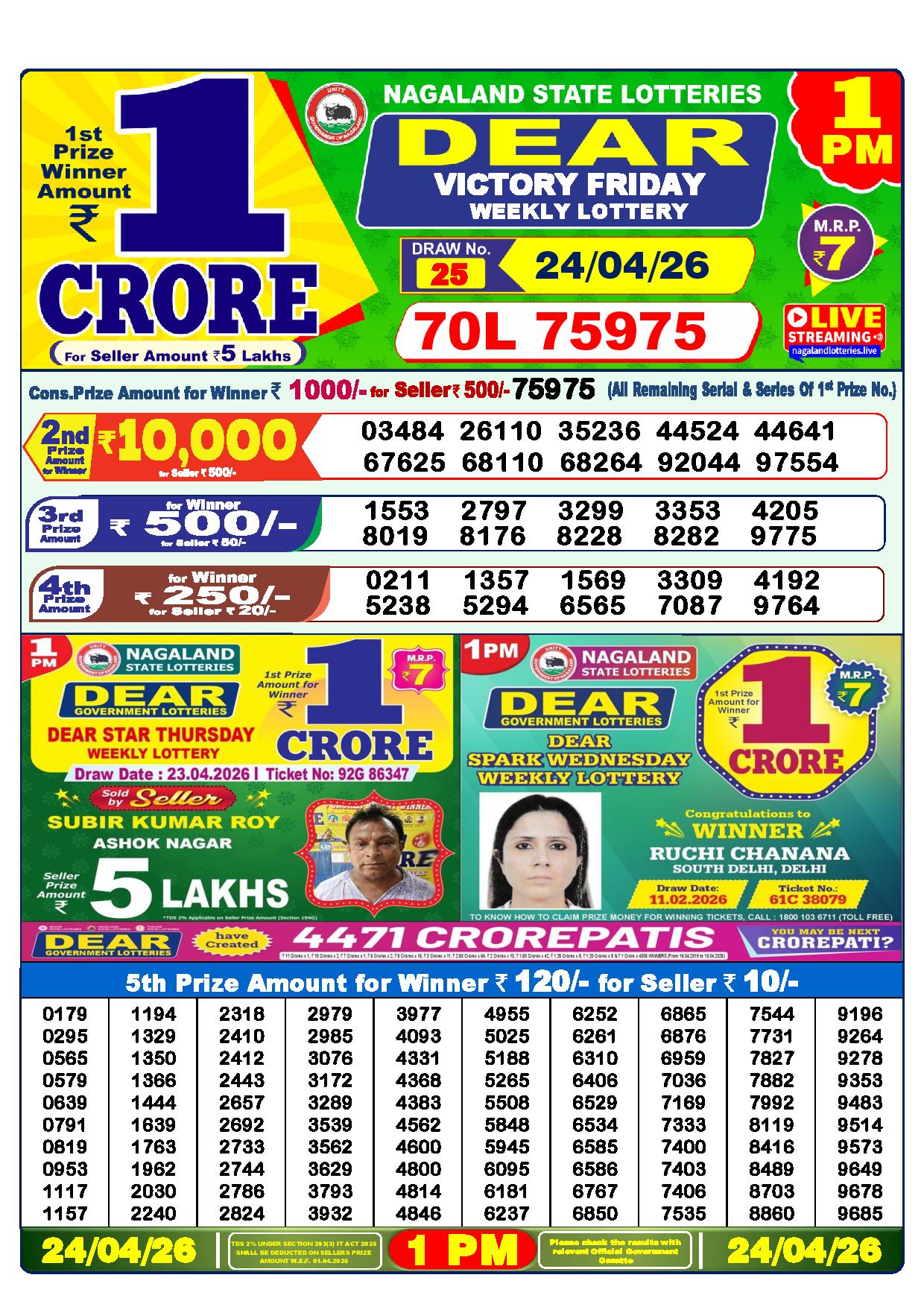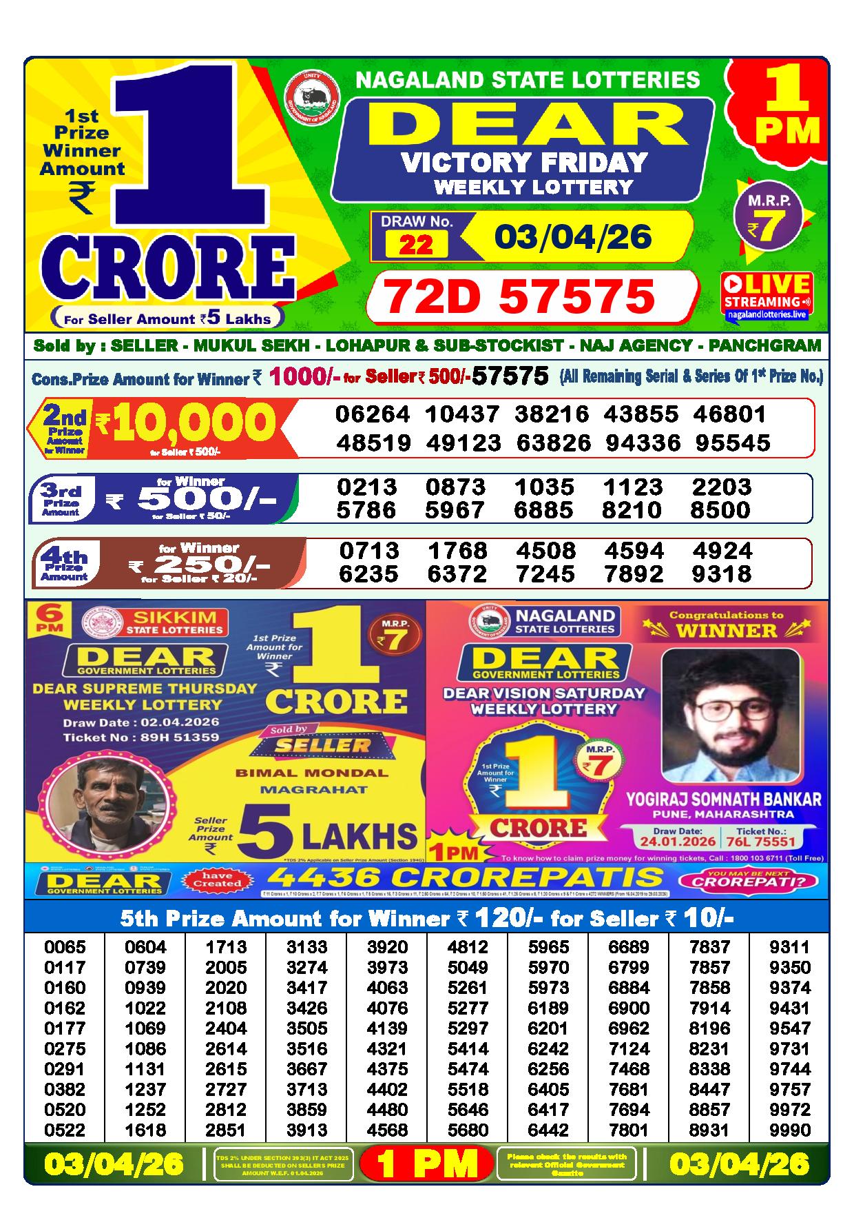 Excellent news! Just now, the Nagaland State Lottery Department made the Dhankesari results for the 1 pm Greetings, Lottery. It’s time to see how lucky you are today.