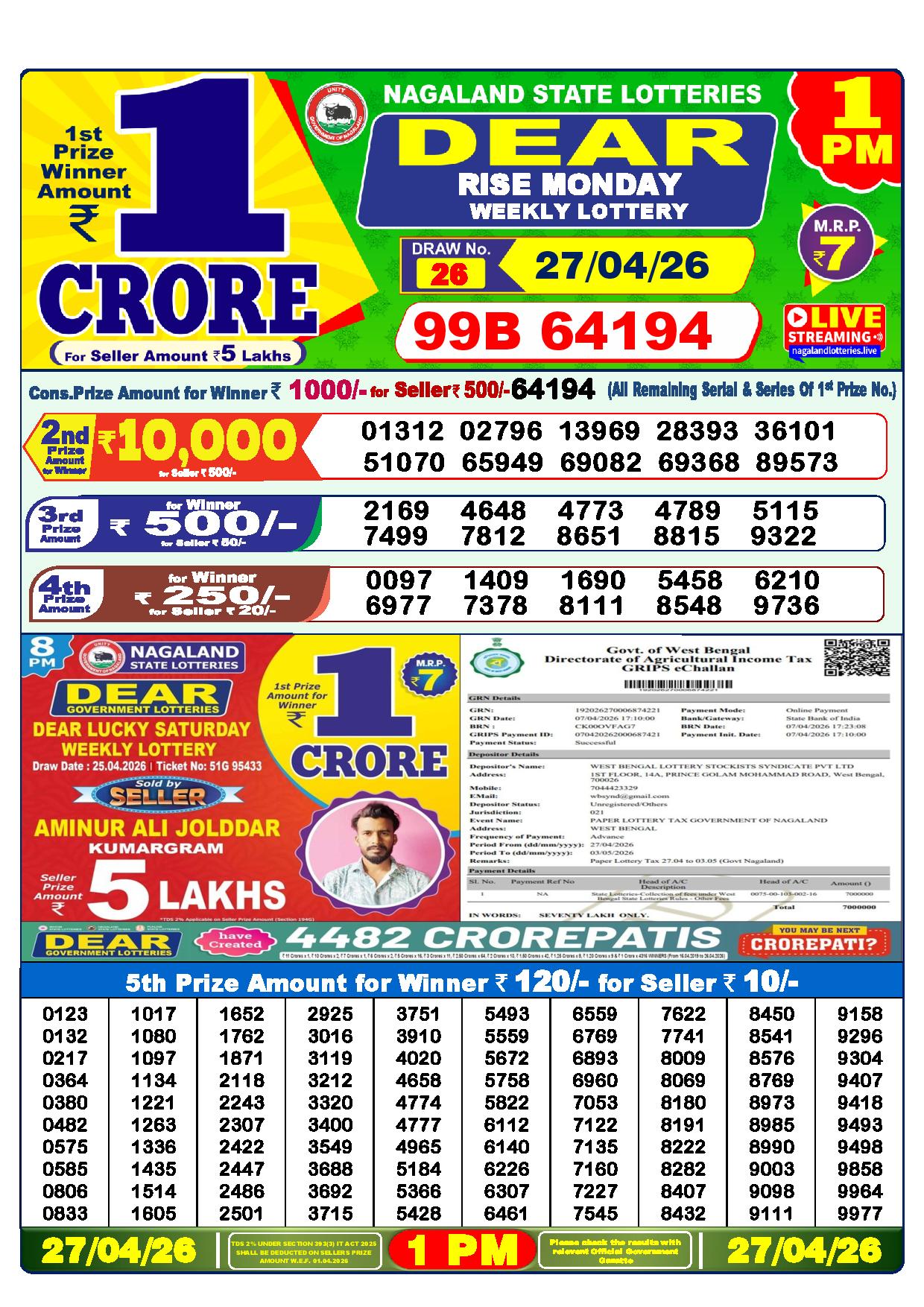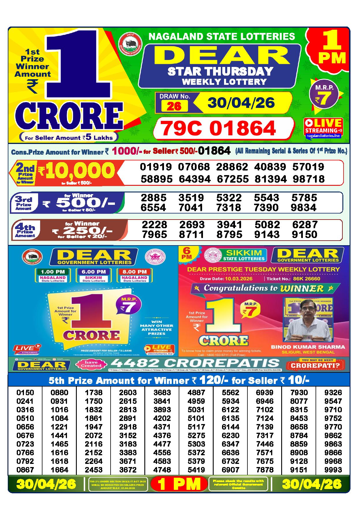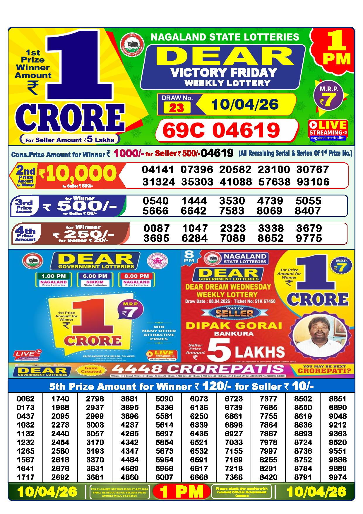Excellent news! Just now, the Nagaland State Lottery Department made the Dhankesari results for the 1 pm Greetings, Lottery. It’s time to see how lucky you are today.